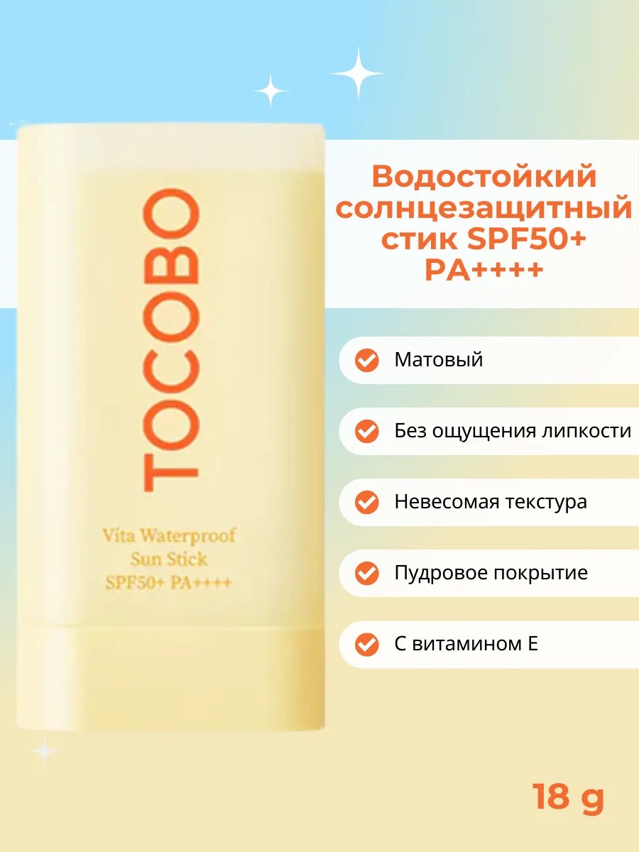 TOCOBO Водостойкий солнцезащитный стик Vita Waterproof Sun Stick SPF50+ PA++++ – это инновационное средство для защиты кожи от солнечного излучения, обеспечивающее комфортное нанесение и надежную защиту. Уникальная формула стик-санскрина содержит мощные антиоксиданты и ухаживающие компоненты, которые не только защищают кожу от УФ-лучей, но и ухаживают за ней в течение дня.