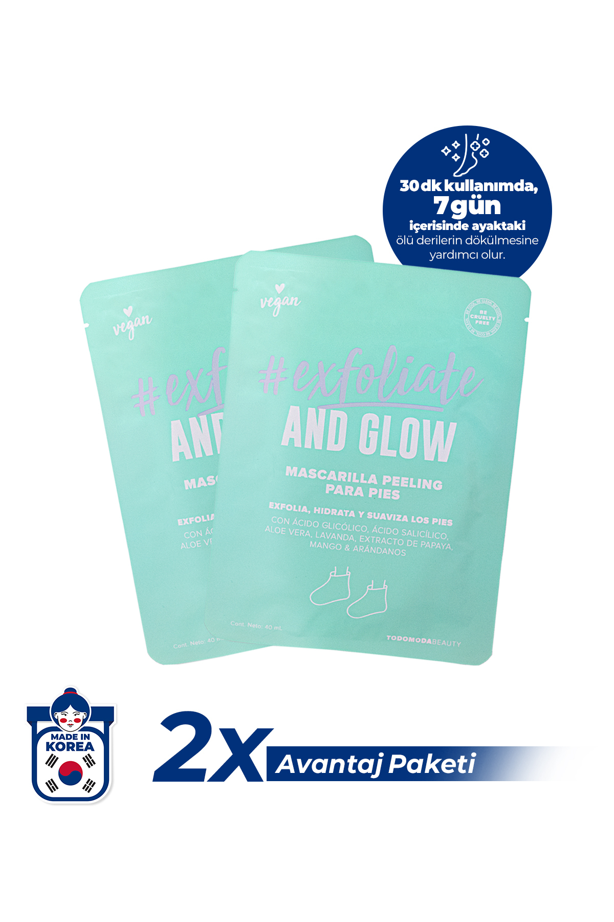 Exfoliate and Glow Foot Peeling Mask is not only an aesthetic solution, but also an ideal care to protect your skin health. By taking the necessary care of your feet, you can make them renewed and healthy.
