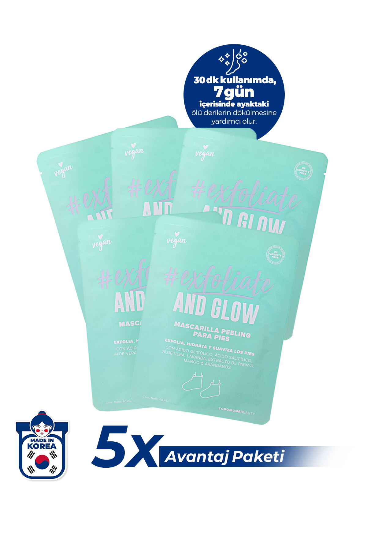 todobeauty 5-pack Exfoliate and Glow Sock Type Peeling Foot Mask