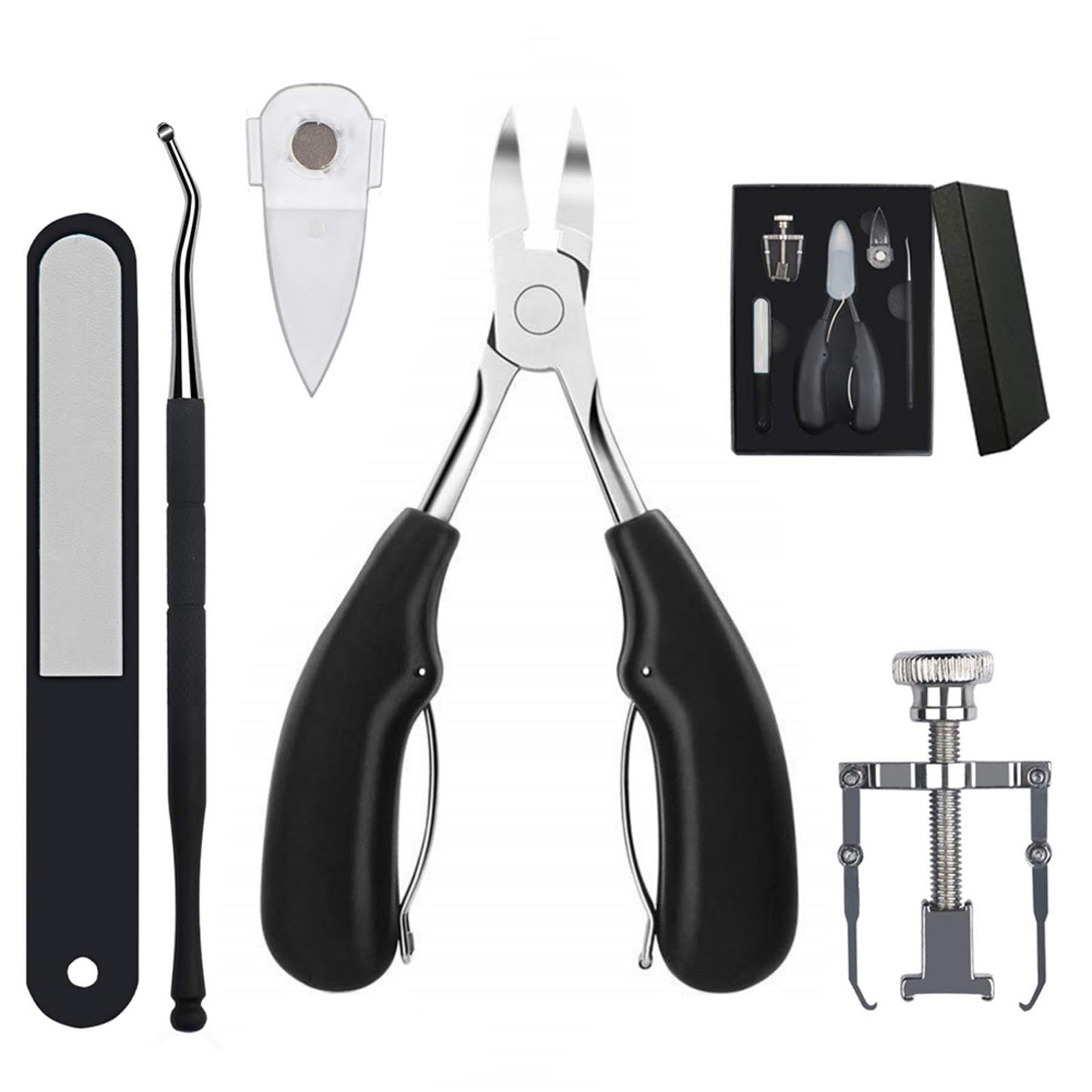 Features: 1. Made of high quality stainless steel and the handle is made of ABS , which is comfortable grip and long life. 2. The sharpness of the olecranon is three times that of the ordinary model. After high temperature treatmentt, it does not roll and does not collapse. 3. The forceps corrector uses the principle of leverage to make it easy and painless to smooth your shiny nails. 4. This set of products can the nail dirt, into the nail ditch trimming, correcting the pliers and curling the field, etc is suitable for the people of the armorr, the curling armorr and the meat bag. 5. The manicure set is small size, so it is portable for carry out. Parameters(approx.): : ABS + stainless steel Specifications: 5 sets Size: Tender: 10.9*0.6cm/4.29*0.24in Nail file: 8.3*1.3cm/3.27*0.51in Nail clippers: 12.7*5.5cm/5*2.17in Note: After correction, you can put some cotton in the gapp of the nail, try to avoid shoes with squeezed feet List: 1*Nail file 1*Nail clipper 1*Toenail Corrector 1*Twillizer 1*Magnetic coverr?for sticking under the nail clipper? DIRECTIONS Refer to description