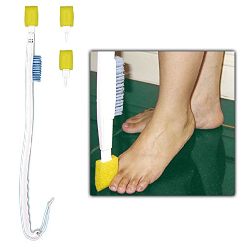 Zehenwascher, Fußbürste mit Bürstenkopf und Schwamm, Kosmetex Alltagshilfe 68 cm zur Fußhygiene, Fußwäsche