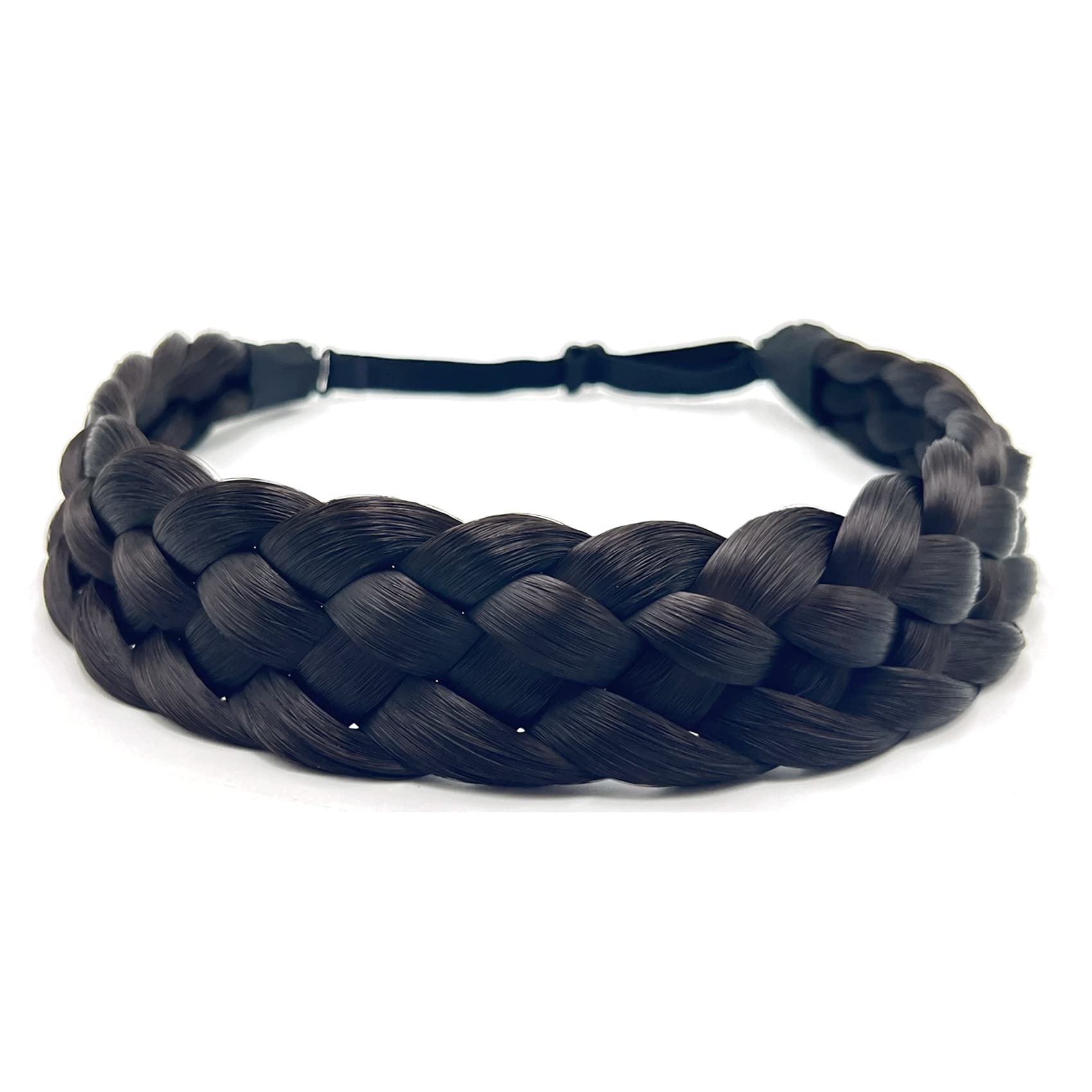 TOECWEGR 5 Strands Synthetic Hair Braided Headband Hairpiece Classic Chunky Wide Plaited Braids ElasticMulti-Color Headband Ladies Beauty Headwear Brownish black
