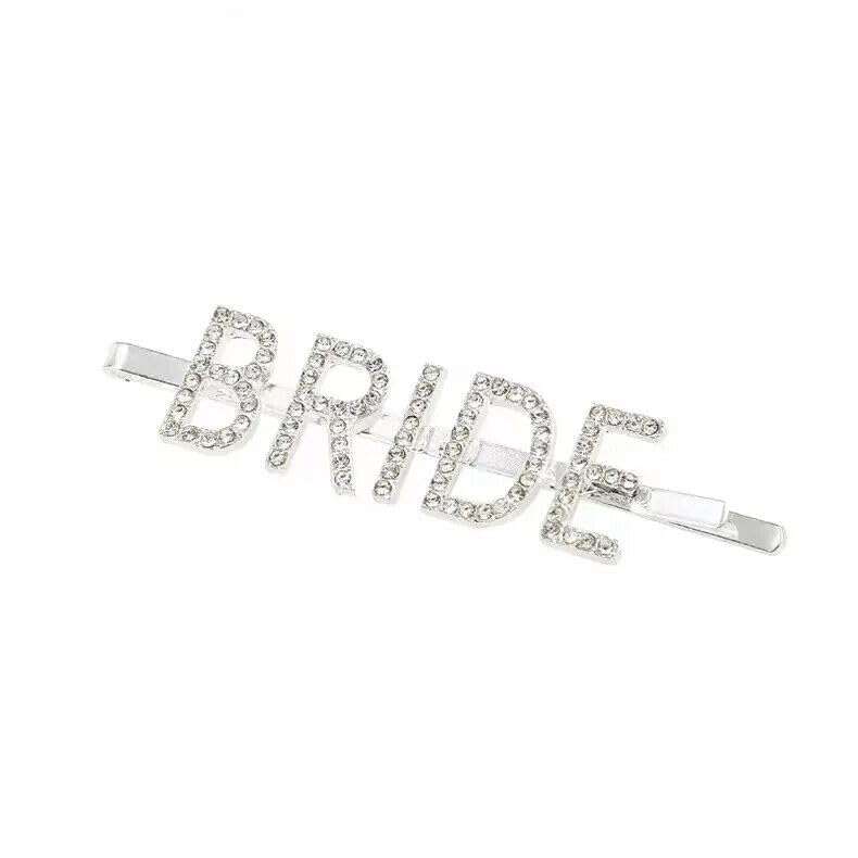 Elevate your bridal look with our exquisite Crystal Rhinestone Bride Hair Clip. Designed to add a touch of elegance and sparkle to your special day, this hair accessory is perfect for brides, bridesmaids, and bachelorette party attendees. Featuring premium quality rhinestones that catch the light beautifully, our hair clip is crafted to spell out "BRIDE" in elegant lettering, making it a statement piece for any wedding-related event. SAFETY WARNING External use only