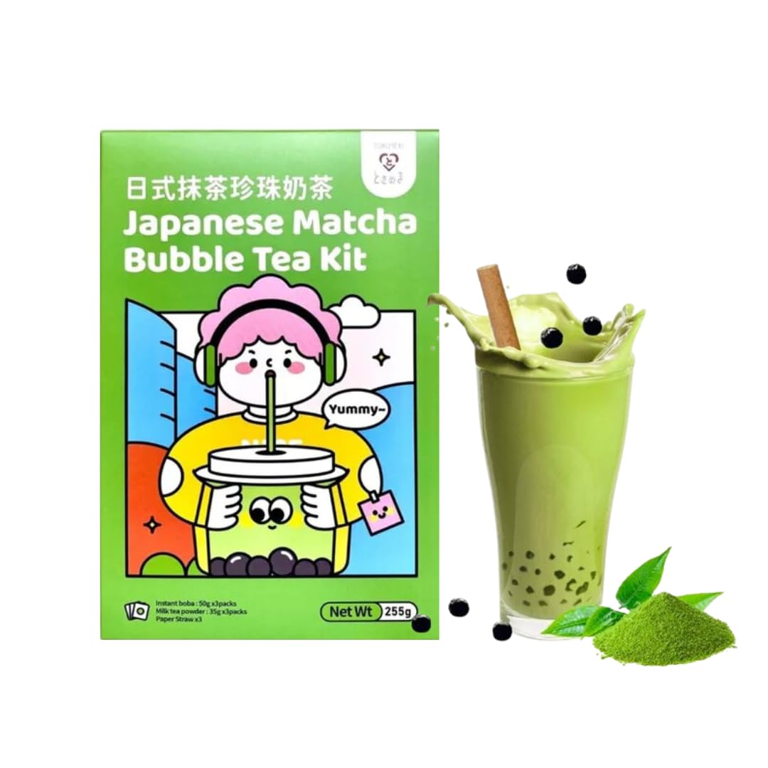 Tokimeki Bubble Tea Kit 255g |Simply prepare at home |Hot or cold enjoy perfect for relaxing + Heartforcards shipping protection (Matcha) Macha