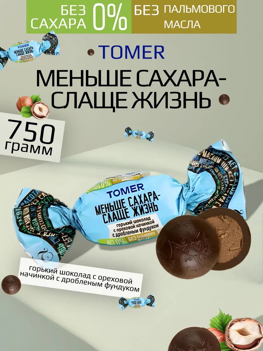 ТОМЕР Конфеты без сахара с ореховой начинкой 750 г