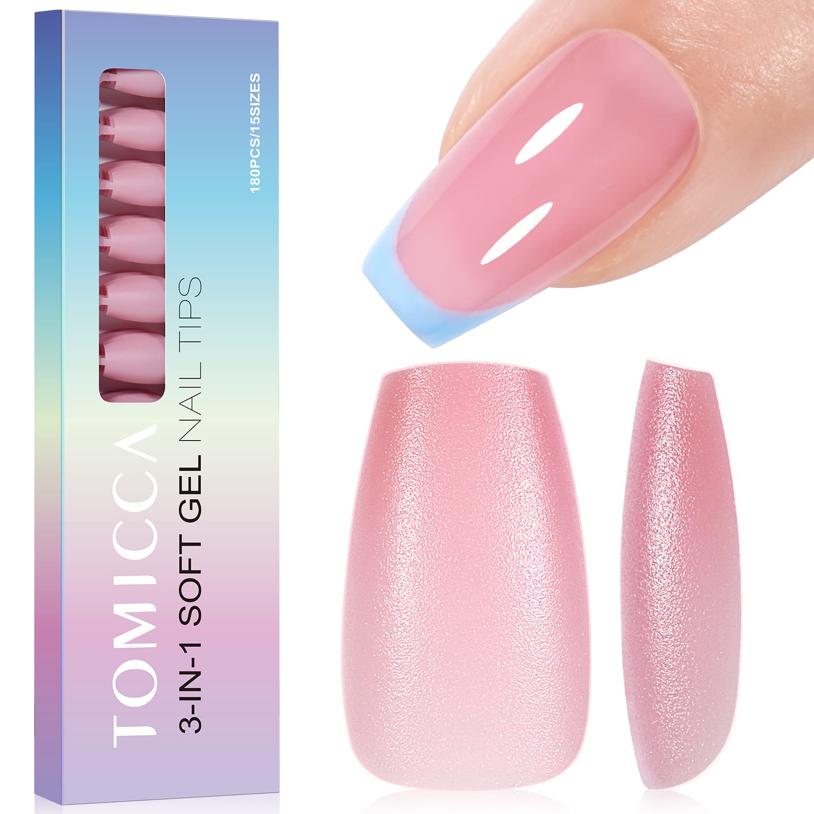 Malleable Acrylic Extensions : TOMICCA short coffin soft gel acrylic nail tips are flexible, durable, and perfect for nail extensions. Shape and sculpt effortlessly with their malleable consistency. Express your unique style without stinging, marks, or cracks. Ideal for nail enthusiasts and professionals. Upgade 15 sizes fit all nails: TOMICCA soft gel nails tips provide 15sizes from 0 to 11, 8.5,9.5and10.5,12 tips for each size,total 180pcs tips. With the professional nail sizes database, we offer the most-used 15 sizes,make it easier to find one that suits you. Enhancing Your Natural Beauty: TOMICCA gel nail tips feature an innovative fit design that ensures a seamless blend with your natural nails, semi transparent material provides a subtle translucency. From the cuticle to the free edge, each tip is meticulously contoured to mimic the shape and curve of your nails, delivering a perfect fit and a natural appearance. Embrace the confidence of flawless nails for any occasion!. Pre-coloured and time-saving: our short coffin nail tips are pre-coloured with the popular colour. They are ready to use immediately after applying the top coat. No need for base coat and gel polish anymore. so you can DIY your own nail styles gel nail polish directly, reducing the time in curing and filing during operating. 3 In 1 matte full coverage nail tips : Our 3-in-1 gel nail tips are well combined with soft gel tips and base coat cover, The matte back surface enhances bonding, promoting a stronger bond, ensuring the nails superior adhesion with nail glue.With proper application and curing under a UV lamp, these gel nail tips are ready to wear, Save more time, and money! (Include 180pcs nail tips ONLY, matte finished, need to apply top coat).
