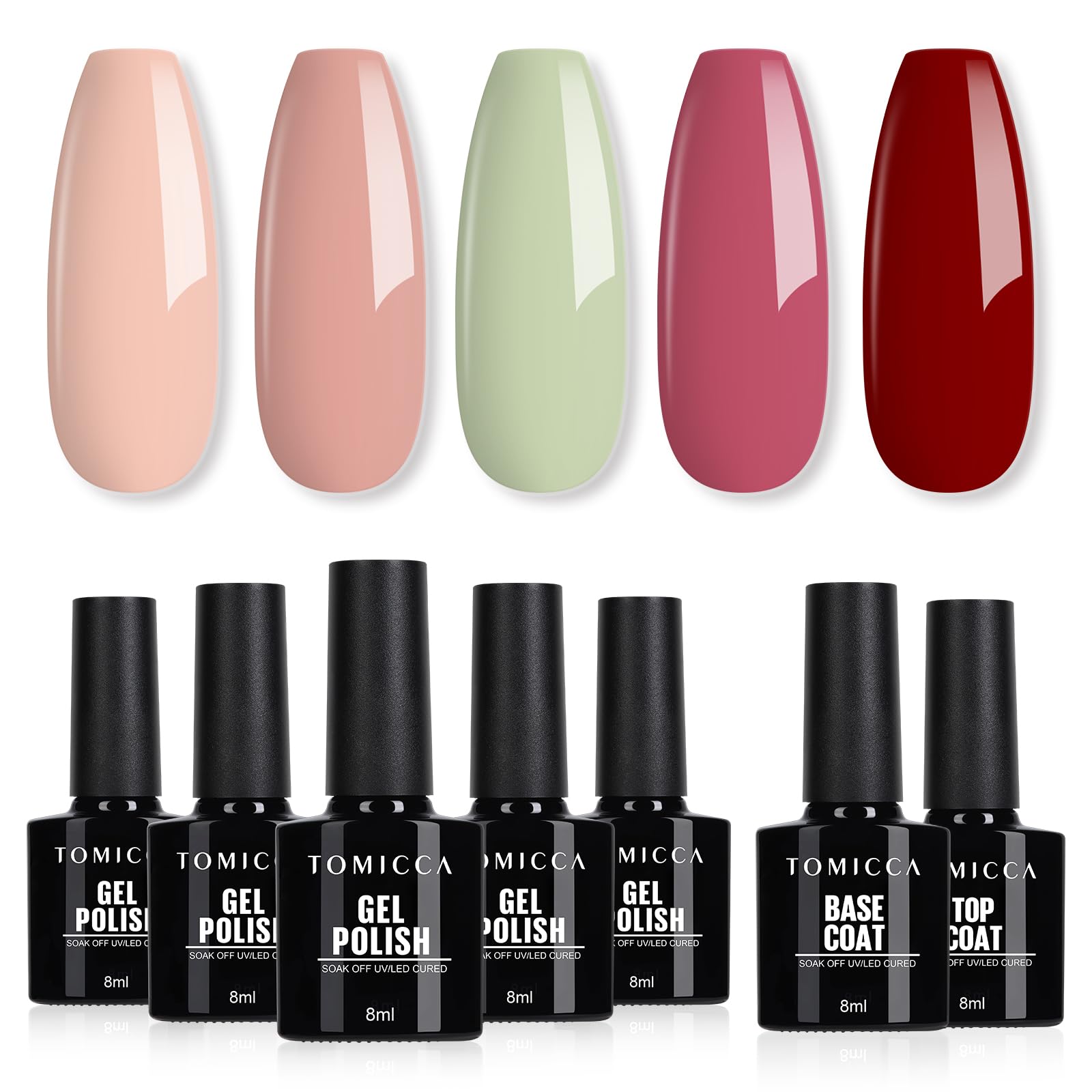 As a giftThis translucent color is perfect all year round and for every occasion, you can create a variety of styles and it can match all your outfits.It can be used to create many popular nail art styles, perfect for daily work, dates, parties, birthdays, etc., and can also be a surprise gift for Valentine's Day, anniversary, Thanksgiving, Christmas or Mother's Day.SustainabilityApply the base coat, colored nail polish and the top coat in this order.Each step requires 60 to 90 seconds of UV.After completing the correct application steps, ISE can be durable for 3 weeks or more.You don't have to worry that the gel will solve when you take a bathroom and clean what gives you more security when using it!.Natural materialTomicca UV nail polish uses high -quality natural hard fabrics, all of which were tested by SGS and MADs to ensure health and be non -toxic.It has a low smell and damage neither nails nor skin, so it can be used with confidence.With rich colors and without brushes, you can create the desired nail style in a short time and thus save time and effort.BASE COAT NO WIPE TOP COATTomicca Base Coat has high liability that can extend the lifespan of the colored gel.Easy to use, even for beginners.Tomicca no Wipe Top Coat is enough to harden it to complete it, it can protect the nail surface, prevent the gel from detachment and keep the nail brilliantly.Tomicca 5 2 gift setThe Tomicca gel nail polish set contains the hottest colors of the moment, including light -green, pink, nude, red colors, etc., with base and top coat, it is more convenient and faster.A set is everything you need for a nail studio experience at home.Als GeschenkDiese durchscheinende Farbe ist das ganze Jahr über perfekt und für jeden Anlass, Sie können eine Vielzahl von Stilen kreieren und sie kann zu all Ihren Outfits passen. Es kann verwendet werden, um viele beliebte Nailart-Stile zu kreieren, perfekt für die tägliche Arbeit, Dates, Partys, Geburtstage usw., und kann auch ein Überraschungsgeschenk für Valentinstag, Jubiläum, Thanksgiving, Weihnachten oder Muttertag sein. NachhaltigkeitTragen Sie den Base Coat, Farbiger Nagellack und den Top Coat in dieser Reihenfolge auf. Jeder Schritt erfordert 60 bis 90 Sekunden UV-Aushärtung. Nach Abschluss der korrekten Anwendungsschritte ist ise 3 Wochen oder länger haltbar. Sie müssen sich keine Sorgen machen, dass sich das Gel löst, wenn Sie ein Bad nehmen und reinigen, was Ihnen mehr Sicherheit bei der Verwendung gibt!. Natürliches MaterialTOMICCA UV Nagellack verwendet hochwertige natürliche Harzinhaltsstoffe, die alle von SGS und MADS getestet wurden, um Gesundheit zu gewährleisten und ungiftig zu sein. Es hat einen geringen Geruch und schädigt weder Nägel noch Haut, so dass es mit Zuversicht verwendet werden kann. Mit satten Farben und ohne Pinselspuren können Sie in kurzer Zeit den gewünschten Nagelstil kreieren und so Zeit und Mühe sparen. BASE COAT NO WIPE TOP COATTOMICCA Base Coat hat eine hohe Haftung, die die Lebensdauer des farbigen Gels verlängern kann. Einfach zu bedienen, auch für Anfänger. TOMICCA No Wipe Top Coat reicht aus, um ihn auszuhärten, um ihn zu vervollständigen, er kann die Nageloberfläche schützen, das Ablösen des Gels verhindern und den Nagel lange glänzend halten. TOMICCA 5 2 GeschenksetDas TOMICCA Gel Nagellack Set enthält die angesagtesten Farben des Augenblicks, darunter Lichtgrün, Rosa, Nude, Rot Farben usw, mit base und top coat, es ist bequemer und schneller. Ein Set ist alles, was Sie für ein Nagelstudio-Erlebnis zu Hause benötigen.TOMICCA UV Nagellack Set, 5 Farben Gel Nagellack mit Base No Wipe Top Coat, Rosa Nude Lichtgrün Rot Nagellack Soak-Off UV LED, Starter-Kit Geschenk Französisches Nagelstudio, 7 x 8ml 08-Rosa Nude Lichtgrün Rot