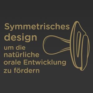 Der kiefergerechte und symmetrisch geformte Sauger wurde für ein verbessertes Gleichgewicht kreiert, wodurch es Babys vereinfacht wird, den Schnuller im Mund zu behalten, und so die natürliche orale Entwicklung fördert.
