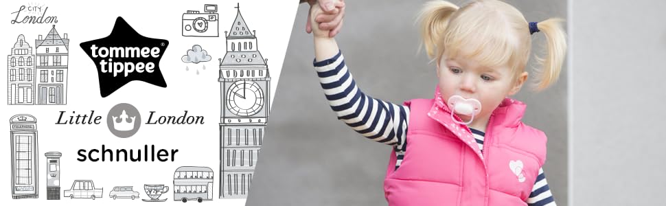 Mütter wissen, dass es nichts Wundervolleres gibt als ein ruhiges, zufriedenes Baby und so hat Tommee Tippee eine neue Schnullerkollektion entwickelt, die von Babys erprobt wurde. Der symmetrisch geformte, kiefergerechte Sauger wurde eigens dazu entwickelt, so optimal wie möglich von Babys angenommen zu werden. Wenn Sie also Schreien und Toben in Lächeln und Schlaf verwandeln möchten, nehmen Sie einfach einen Closer to Nature Schnuller. SET ENTHÄLT: 1 x Tommee Tippee Little London Schnuller 6-18m Rot