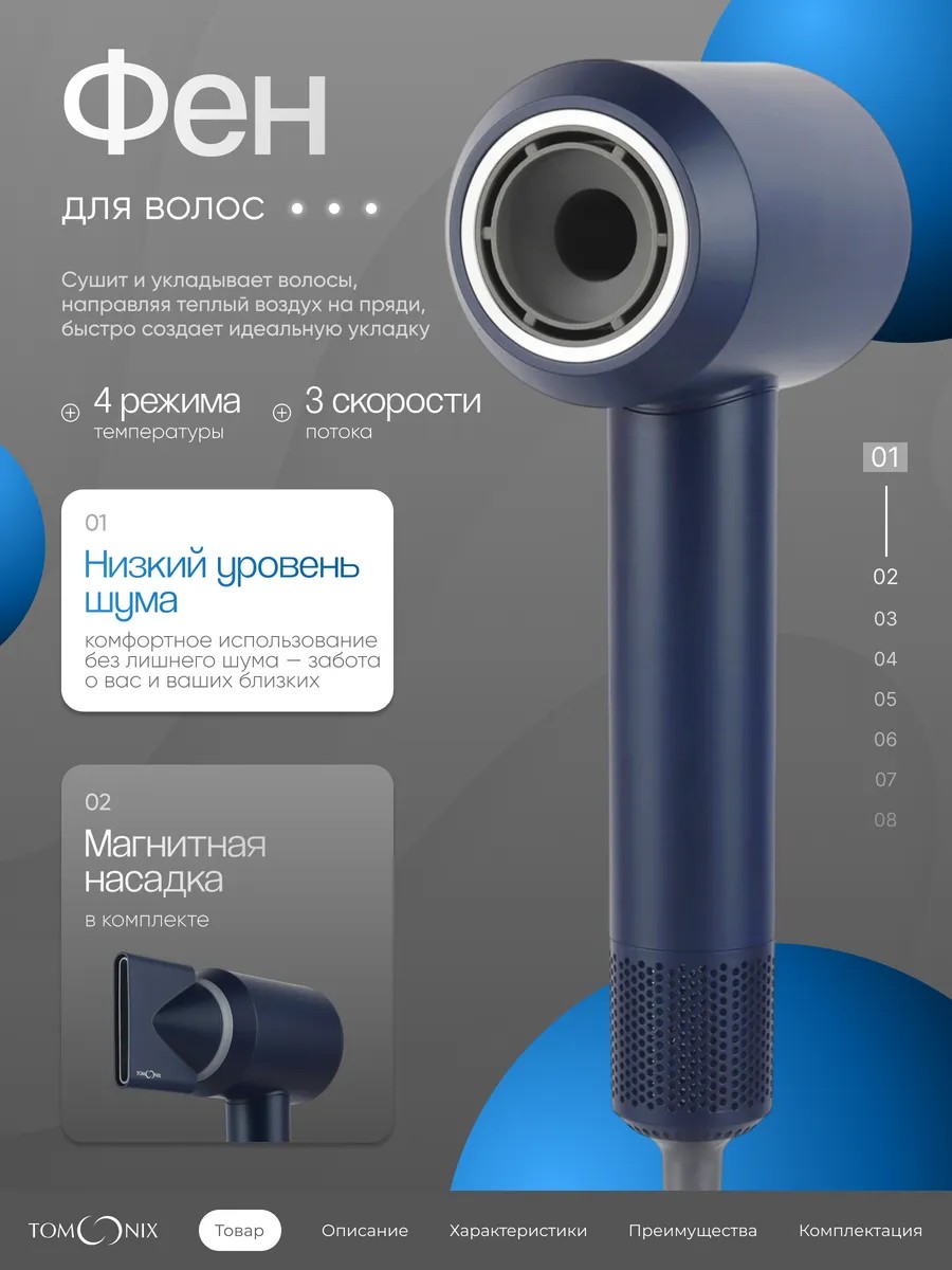 TOMOONIX Фен для волос профессиональный TM-HD01, темно-синий