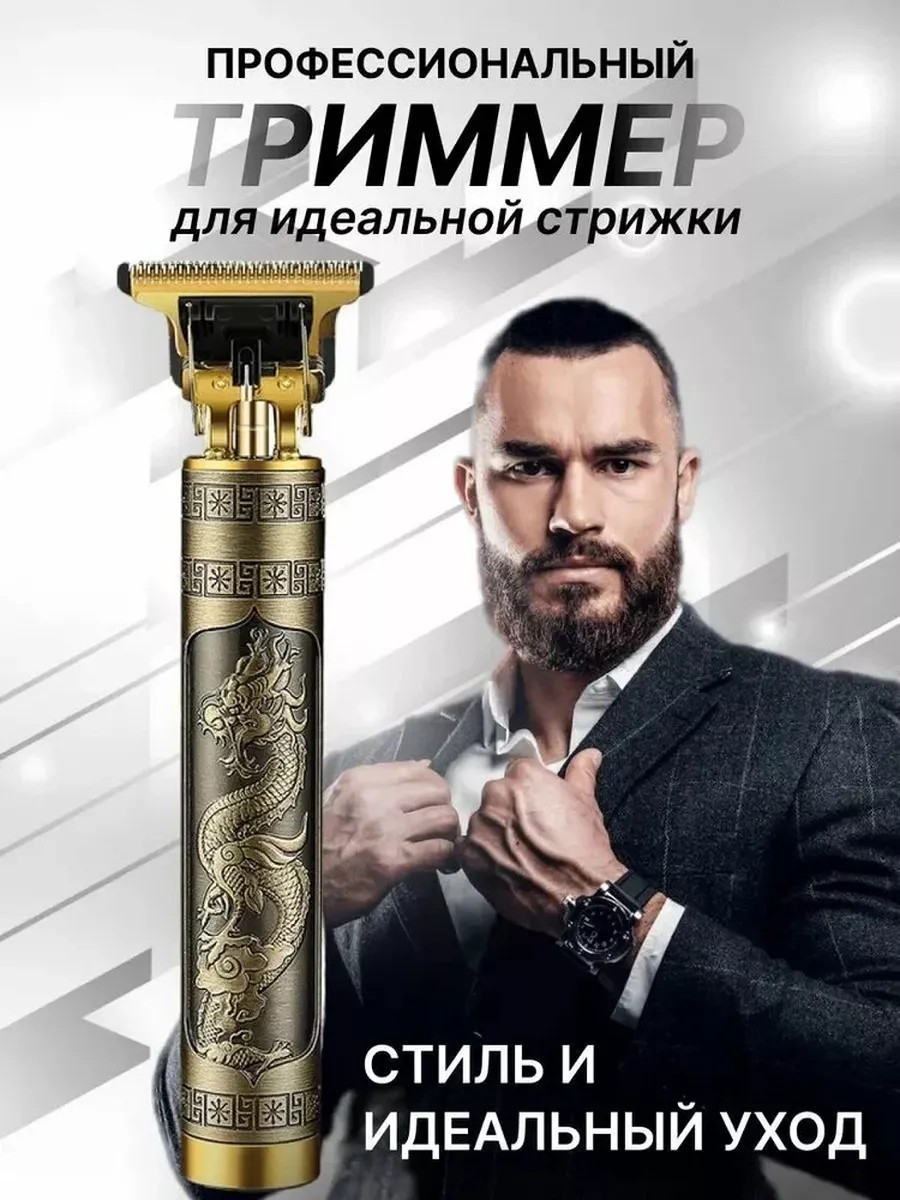 Want your own hair clipper with all the necessary attachments for perfect results? Meet our new model with 4 attachments. A portable, barbershop-style trimmer – a cordless, universal device for trimming hair, beards, and mustaches. A high-quality electric clipper will save you money on barbershop and stylist visits. Designed for daily clean, dry shaving of stubble, for use at home and on the go. A safety razor will help trim the contours of your beard. This men's shaver doesn't irritate your skin and is easy to maintain. The kit includes an electric trimmer, lubricating oil, a small brush for cleaning, and 4 replaceable attachments (1.5, 2, 3, and 4 mm). The attractive design and ergonomic handle make this electric shaver comfortable to hold. The on/off button is located at the bottom of the handle, preventing accidental contact while shaving or trimming. It comes in a gold color (with a dragon design). Key features include a waterproof iron body that allows you to rinse the system after trimming and cutting, sharp stainless steel blades, and a lightweight aluminum body instead of plastic. This trimmer cuts as well as a professional hair trimmer. A beard grooming kit removes excess hair. A charger and rechargeable battery are also included. The trimmer perfectly shaves hairs of varying stiffness. This multifunctional trimmer is suitable for shaving the head, underarms, eyebrows, the genital area, and the body. This electric shaver is an inexpensive, budget-friendly gift for adult men, for yourself or a loved one. It also produces minimal noise. You won't disturb your family or neighbors while using it. This professional trimmer will become an indispensable assistant in creating your stylish look!