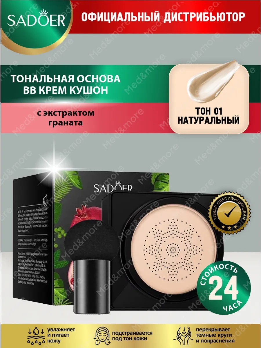 | Полное наименование товара | Тональная основа BB крем кушон Sadoеr с экстрактом граната тон 01 Натуральный 20 гр |