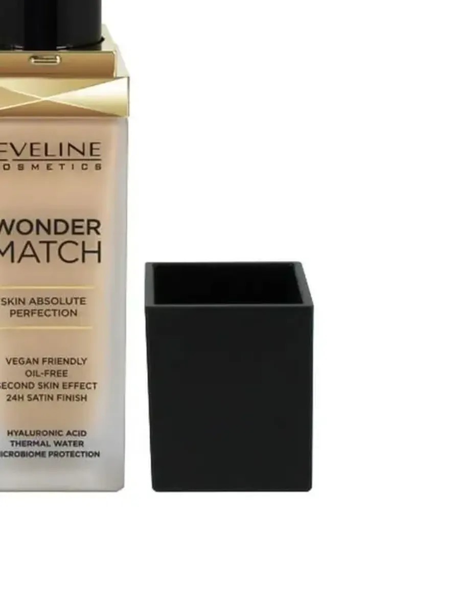 Адаптирующаяся тональная основа WONDER MATCH c гиалуроновой кислотой гарантирует эффект безупречной кожи до 24 часов. Крем идеально подстраивается под тон и структуру кожи, отлично скрывает недостатки без эффекта маски на лице. Инновационная тональная основа имеет натуральный сатиновый финиш, а ее уникальная формула с термальной водой, гиалуроновой кислотой и экстрактом асаи не только ухаживает и увлажняет кожу, но и защищает ее микробиом. Продукт VEGAN FRIENDLY.
