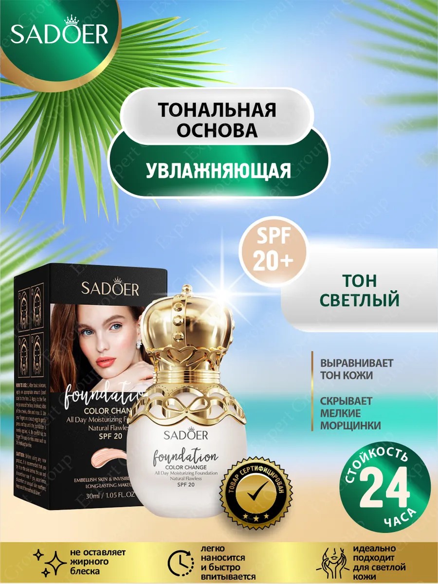 | Комплектация | Увлажняющий тональный крем консилер для лица Sadoer светлый оттенок 30 мл. |