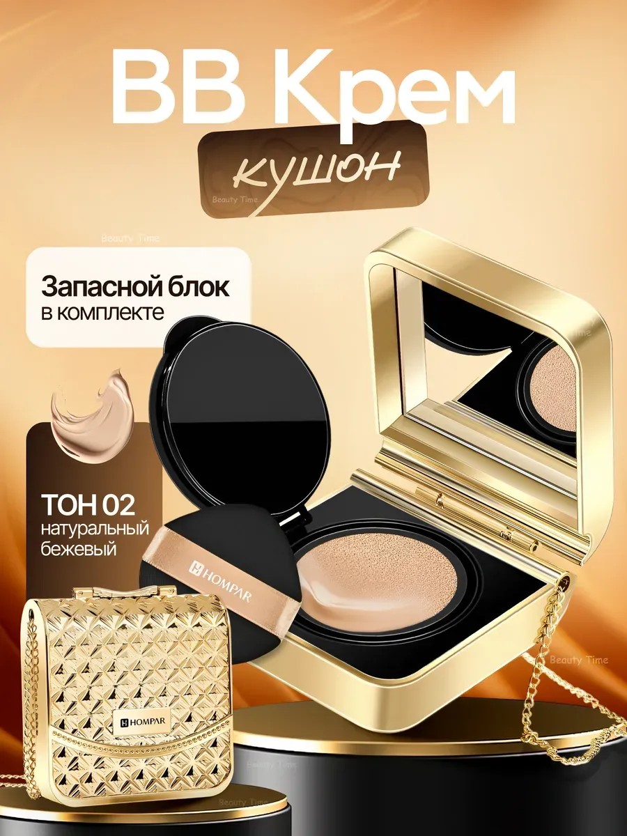 ATTENTION! The mirror is covered with a protective film!!! Shade 02 is a natural beige. Suitable for medium skin with a warm undertone. This makeup set is a must-have! Introducing the cushion foundation (BB cream) complete with a sponge and a refill. This creamy cushion foundation is ideal for girls and women of all ages and skin types, including oily and problematic skin. This premium-quality cushion perfectly mattifies the skin, including age spots and dark circles under the eyes. With a natural mattifying effect, it will help even out skin tone, conceal pigmentation and flaking, creating a "Photoshopped" effect. Our cushion is the perfect combination of cosmetics and skin care, moisturizing and nourishing the skin's collagen. It contains everything you need: base, concealer, corrector, BB cream, CC cream, powder, and finish. Thanks to the SPF, your skin will be protected from the sun, and the shine will add a beautiful glow. The cushion cream includes a full range of shades to suit any skin tone, including beige and ivory. This set will be an indispensable assistant for you and your friend in creating flawless makeup! The original case is a perfect gift idea for your friend or teenager, for New Year's, birthdays, or March 8th! Unrivaled makeup and skin care with Korean facial brands, including a refill and powder puff! Treat yourself and your loved ones with a great gift for New Year's or any other holiday!