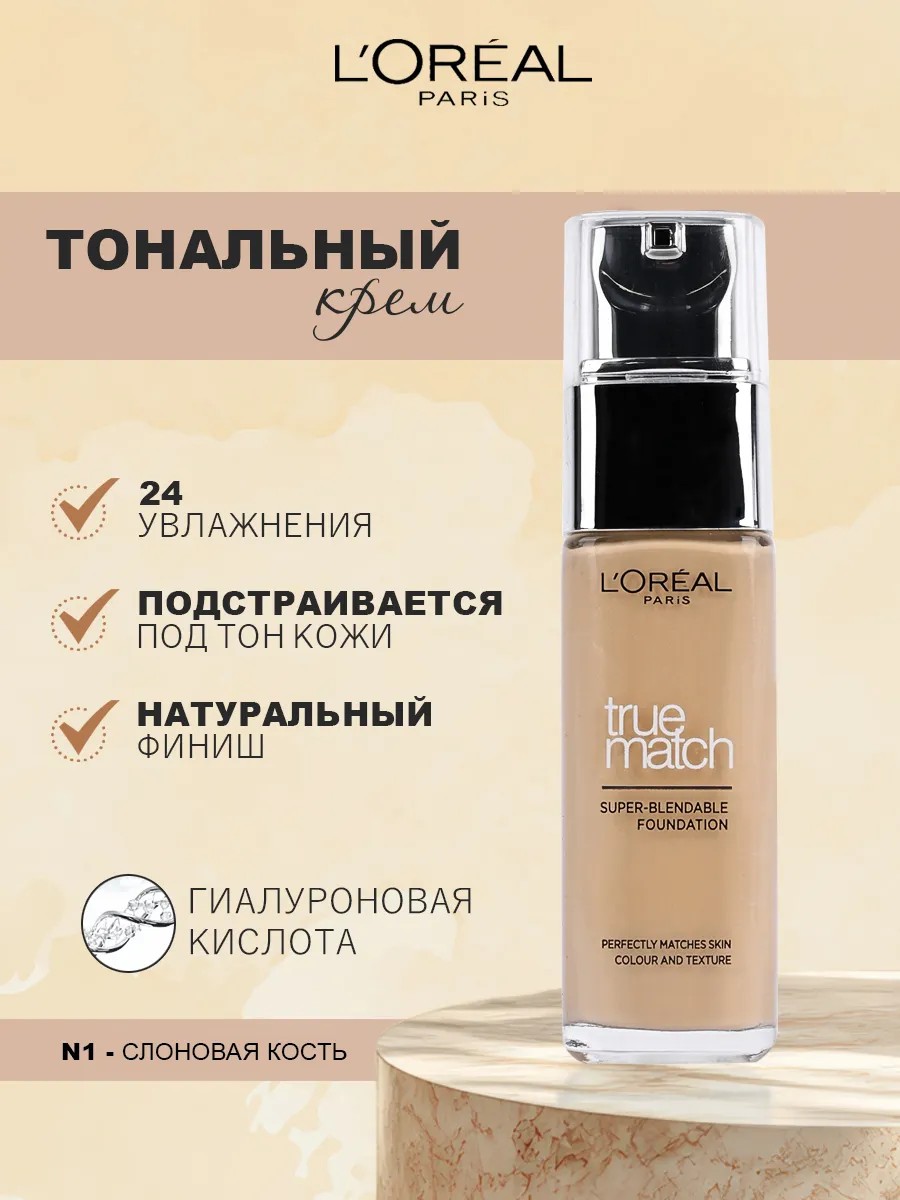 Тональный крем l’oréal True Match – это безупречное решение для ровного и стойкого макияжа. Формула легко наносится, маскирует несовершенства и подстраивается под тон вашей кожи, обеспечивая естественное покрытие без эффекта маски.