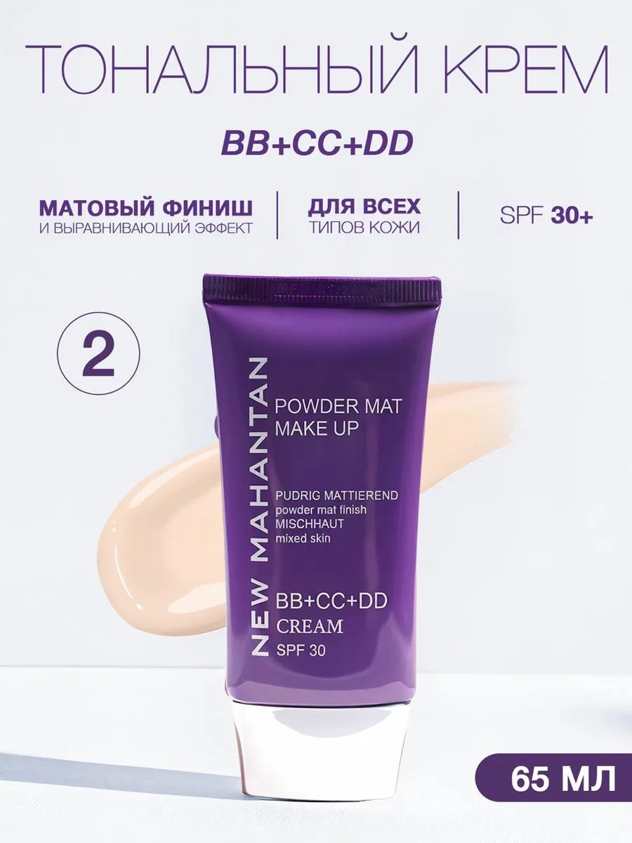 Новинка! Тональный крем BB+CC+DD New Mahantan с SPF 30 обеспечит ваш безупречный макияж каждый день. Его натуральный матовый финиш и выравнивающий эффект создают идеальное покрытие, придавая коже «живой» матовый оттенок и ухоженный вид. Крем обладает антивозрастными свойствами, борется с мелкими морщинками, повышает упругость и придаёт коже свежий, молодой вид. SPF 30 защищает кожу от вредного воздействия солнечных лучей․