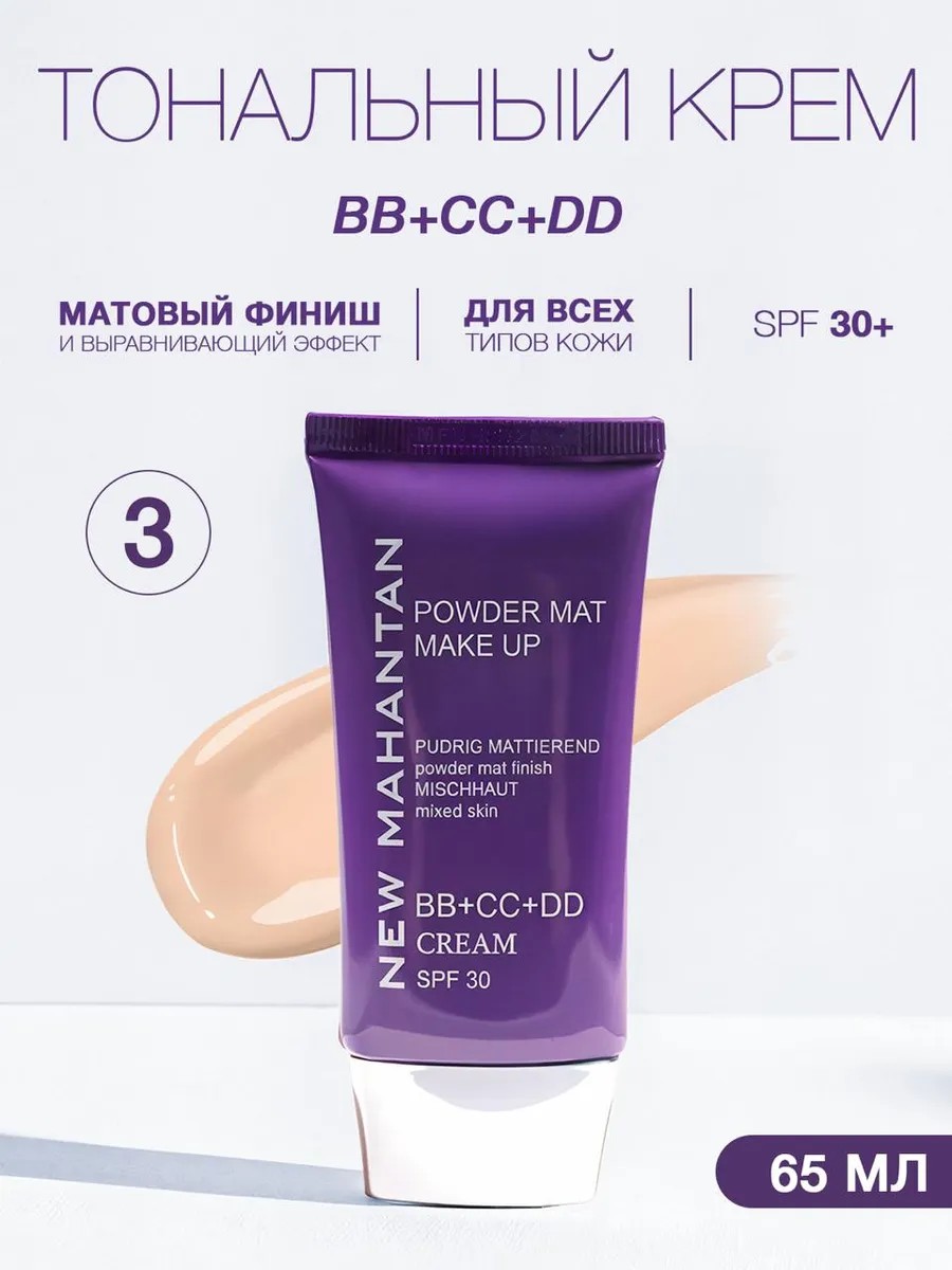 Новинка! Тональный крем BB+CC+DD New Mahantan с SPF 30 обеспечит ваш безупречный макияж каждый день. Его натуральный матовый финиш и выравнивающий эффект создают идеальное покрытие, придавая коже «живой» матовый оттенок и ухоженный вид. Крем обладает антивозрастными свойствами, борется с мелкими морщинками, повышает упругость и придаёт коже свежий, молодой вид. SPF 30 защищает кожу от вредного воздействия солнечных лучей․