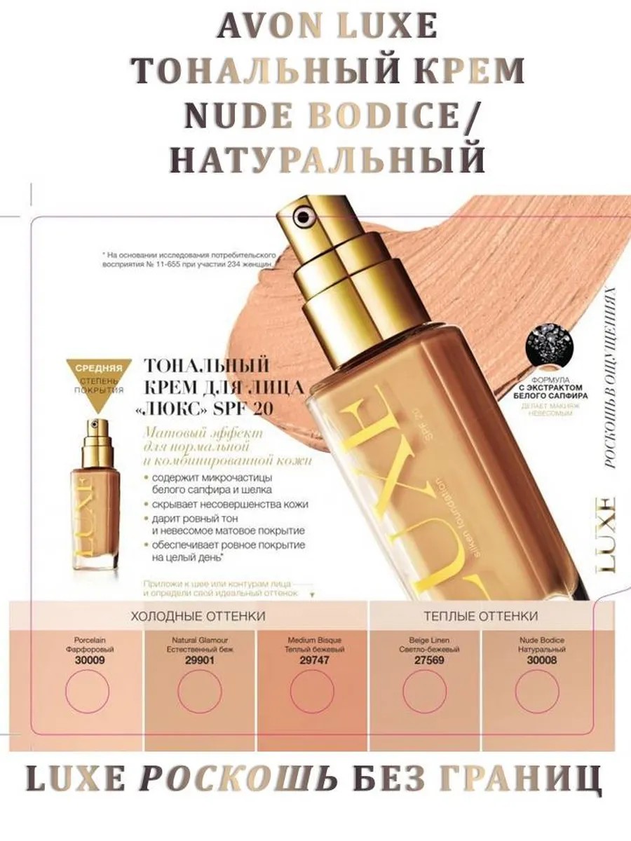 Тональный крем для лица ЛЮКС AVON Натуральный с SPF