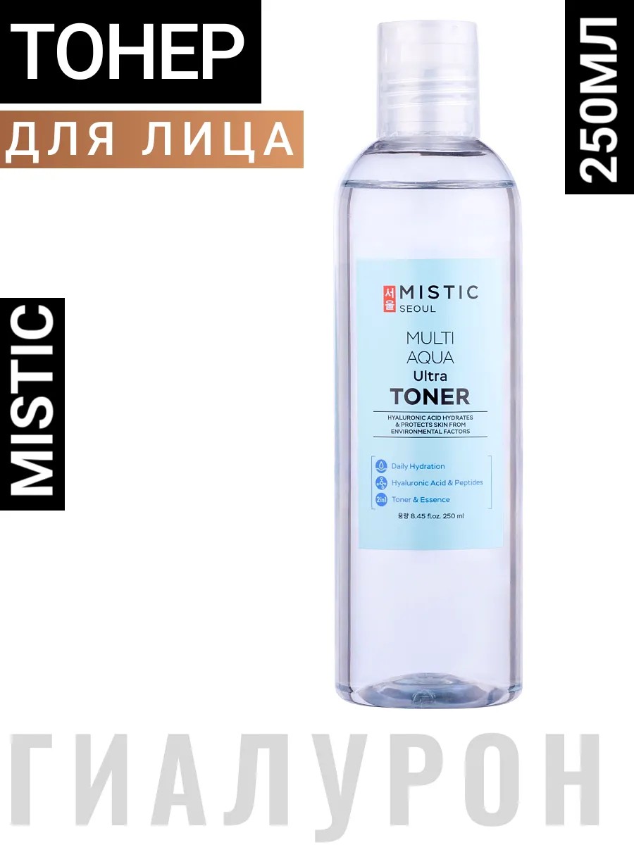 MISTIC MULTI AQUA Ultra Toner Глубокоувлажняющий тонер с гиалуроновой кислотой 250мл. Откройте для себя невероятную силу корейской косметики с Глубокоувлажняющим тонером с гиалуроновой кислотой MISTIC — универсальным средством, которое станет настоящей находкой для вашей кожи! Этот тонер создан для ежедневного ухода за всеми типами кожи, включая зрелую, проблемную и комбинированную. Его формула, обогащенная гиалуроновой кислотой, обеспечивает мгновенное и глубокое увлажнение, что делает его идеальным как для дневного, так и для ночного использования.