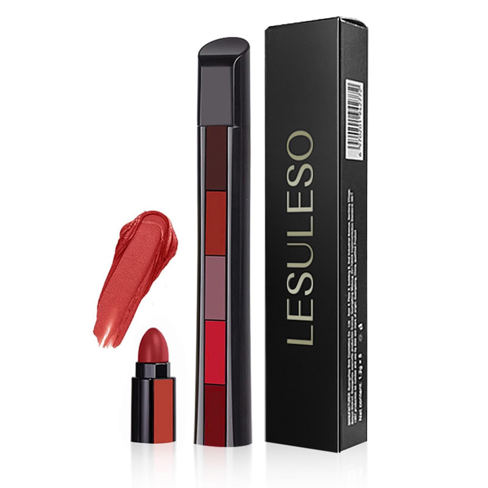 ?Intense Hydration: Experience a boost of hydration and a flawless finish with our 5-in-1 Matte Lipstick Set. Its lightweight texture and intense matte velvet finish will create fuller-looking lips while adding a touch of color that complements your natural skin tone. ?Great Gift Ideas: Give the gift of perfect lips with this 5-in-1 Matte Lipstick Set. Ideal for Halloween, Christmas, Thanksgiving, birthdays, and other holidays. ?Non-Stick Fit: This matte lipstick set won't smudge or fade from sweat, rain, or swimming. The non-greasy, non-sticky formula ensures a smooth, comfortable feel all day long. ?Highly Pigmented Formula: Get vibrant, long-lasting color with our 5-in-1 Matte Lipstick Set. Its non-drying formula leaves a velvety matte finish that stays put all day. Enjoy comfort and style with these highly pigmented velvet matte lipsticks. ?Multifunctional lip gloss set: Get creative with our 5-in-1 matte lipstick set. Featuring a unique layered design, you can switch between five gorgeous shades to match any mood or occasion.