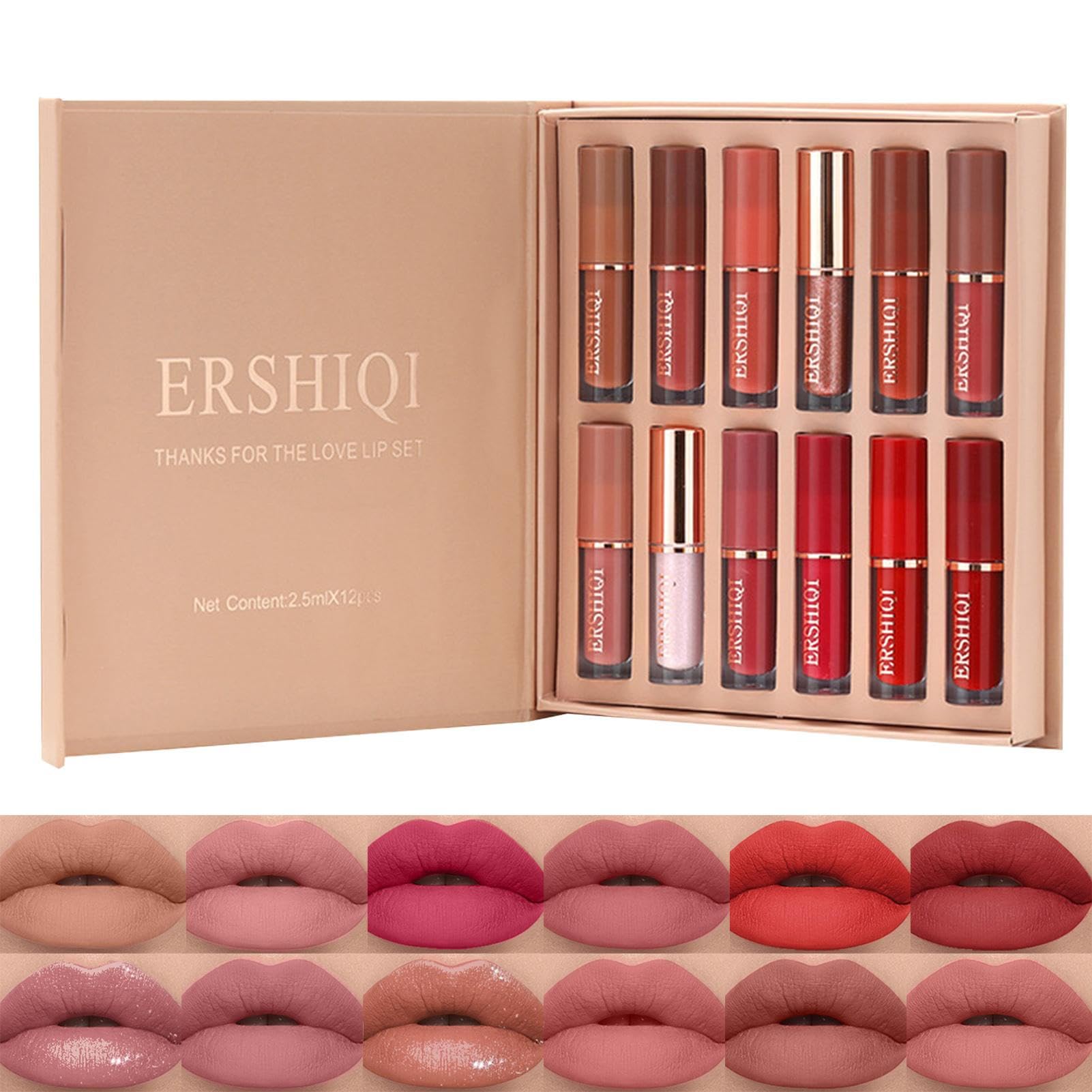 Get ready to turn heads with our Sexy Velvet Lip Tint Kit! These quick-drying liquid lipsticks are perfect for dating and protecting your lips from drying out. Our formula is designed to keep your pout moisturized and stay put all day. Choose from our range of sensual shades and elevate your lip game! Features: Product Name: 12-Piece Lip Gloss Set Size: As shown in the picture Package Contents: 12 Pieces Lip Gloss?Warm Gift: With 12 beautiful shades and a waterproof formula, this set ensures long-lasting wear. Its book-style gift box design also makes it easy to store and carry for touch-ups on the go. Get ready to elevate your beauty routine with this back-to-school essential. ?Healthy Lips: Experience nourished lips and bold color with our Matte Liquid Lipstick Set. Take care of your lip health by first applying a lip balm to hydrate and protect. Wait for it to dry, then apply our non-sticky formula for long-lasting color. Finish with a lip gloss for a perfect matte look. ?Versatile Occasions: From everyday wear to special occasions, this multi-occasion Matte Liquid Lipstick Set is perfect for all your lip makeup needs. With a non-sticky, quick-drying formula, you can rely on it to last for hours while you're working, shopping, going out, gathering, traveling, or staying in. ?Matte Finish: Achieve the perfect velvety finish with our lip tint kit. Our lightweight, quick-drying, and waterproof formula is blended with gentle, long-lasting ingredients to provide comfortable, long-lasting wear that won't budge. You'll love the natural shades that perfectly complement any look. ?Plump Lips: Enhance your smile with our set of highly pigmented matte liquid lipsticks! This long-lasting formula will keep your lips soft and comfortable all day long. Treat yourself to a range of lightly scented, richly pigmented colors with no sticky feeling.Rouges à lèvres antiadhésifs,Rouge à lèvres légèrement parfumé Velvet Lip Gloss Travailleurs Étudiants Rouge à lèvres avec plusieurs couleurs pour la maison, le shopping, les TongfengDESCRIPTION DU PRODUIT Préparez-vous à faire tourner les têtes avec notre kit de coloration pour les lèvres Sexy Velvet ! Ces rouges à lèvres liquides à séchage rapide sont parfaits pour dater et protéger vos lèvres du dessèchement. Notre formule est conçue pour garder votre moue hydratée tout en restant en place toute la journée. Choisissez parmi notre gamme de teintes sensuelles et améliorez votre jeu de lèvres ! Caractéristiques: Nom du produit : ensemble de 12 brillants à lèvres. Taille: comme indiqué sur la photo Liste de colisage: 12 pièces brillant à lèvres?Cadeau chaleureux : avec 12 belles nuances et une formule imperméable, cet ensemble assure une tenue longue durée. Sa conception de boîte-cadeau de livre le rend également facile à ranger et à transporter pour les retouches à l'extérieur. Préparez-vous à rehausser votre routine beauté avec cet essentiel de la rentrée. ?Lèvres saines : faites l'expérience de lèvres nourries et d'une couleur audacieuse avec notre ensemble de rouges à lèvres liquides mats. Prenez soin de la santé de vos lèvres en appliquant d'abord un baume à lèvres pour hydrater et protéger. Attendez qu'il sèche, puis appliquez notre formule antiadhésive pour une couleur durable. Terminez avec un glaçage à lèvres pour un look mat parfait. ?Occasions polyvalentes : du quotidien aux occasions spéciales, cet ensemble de rouge à lèvres liquide mat multi-occasions est parfait pour tous vos besoins de maquillage des lèvres. Avec une formule non collante qui sèche rapidement, vous pouvez compter sur elle pour durer des heures pendant que vous travaillez, magez, sortez, rassemblez, voyagez ou restez à la maison. ?Finition mate : Obtenez la finition veloutée parfaite avec notre kit de teinture pour les lèvres. Notre formule légère, à séchage rapide et imperméable est mélangée à des ingrédients peu irritants pour vous offrir un port confortable et durable qui ne bougera pas. Vous adorerez les nuances naturelles qui complètent parfaitement n'importe quel look. ?Lèvres pulpeuses : Améliorez votre sourire avec notre ensemble de rouges à lèvres liquides mats hautement pigmentés ! Cette formule longue durée gardera vos lèvres douces et confortables tout au long de la journée. Offrez-vous une gamme de couleurs légèrement parfumées et richement pigmentées sans sensation collante.