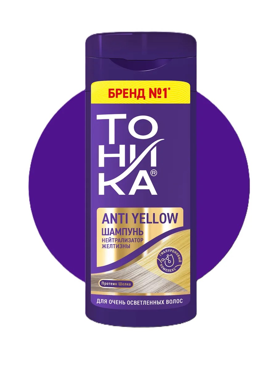 Tonika Anti-Yellow tint products are designed to eliminate yellow tones in bleached, highlighted, and gray hair. The Anti-Yellow shampoo will help maintain your perfect blonde shade. The violet pigments in the conditioner neutralize unwanted brassy and yellow tones, imparting a cool tone to light hair. The formula, enriched with plant extracts, moisturizes and conditions hair. It forms a thin film that helps retain beneficial substances within the hair shaft. It nourishes and protects hair, adding volume and enchanting shine. Can be used instead of shampoo. Contains no alcohol, ammonia, or hydrogen peroxide. Effect: adding color, adding volume, eliminating yellowness, nourishing, strengthening, and adding shine.