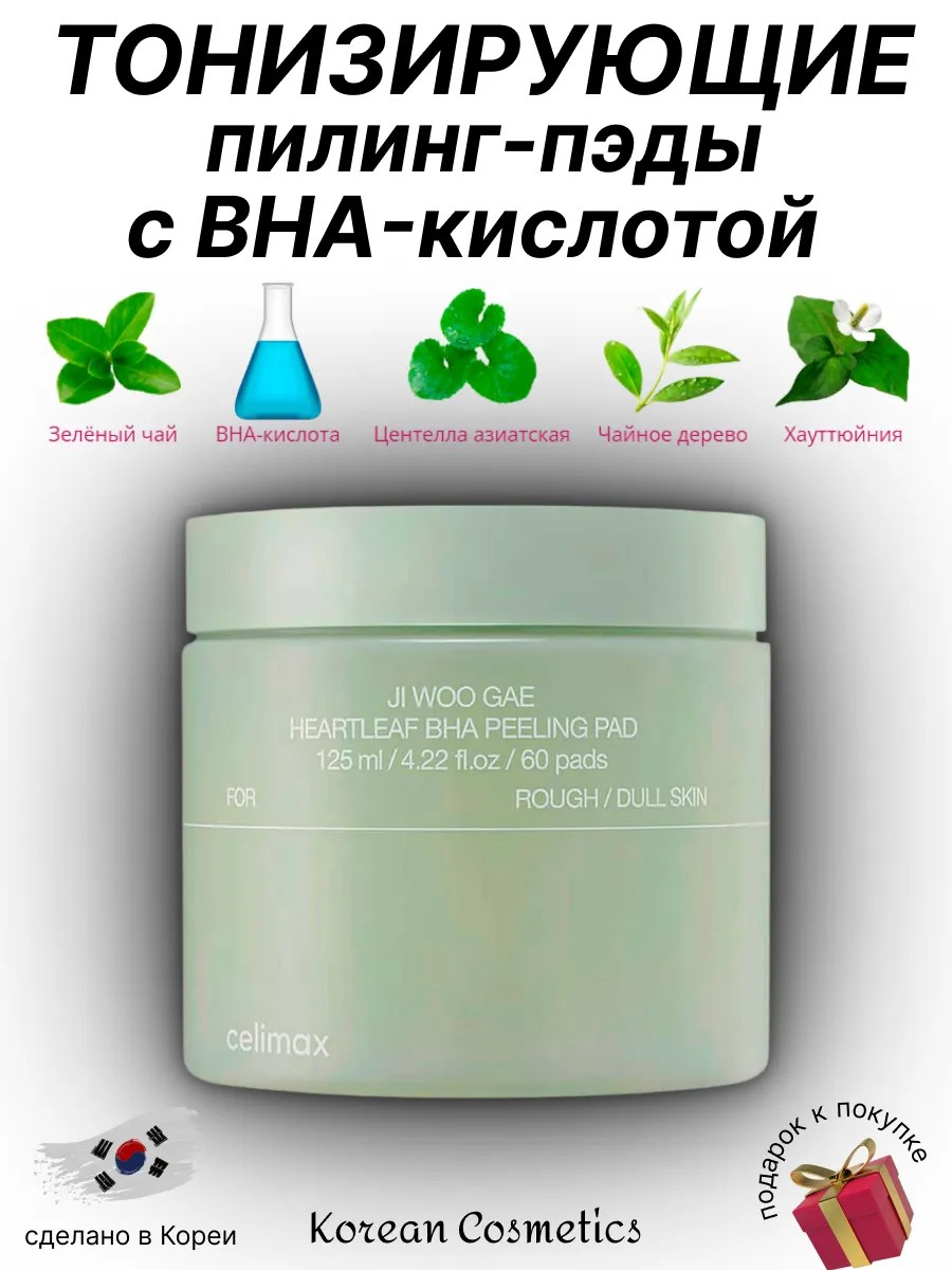 Пилинг-пэды Celimax Ji Woo Gae Heartleaf BHA Peelind Pad прекрасно очищают, избавляют от жирного блеска, борются с воспалениями и чёрными точками, освежают и тонизируют.