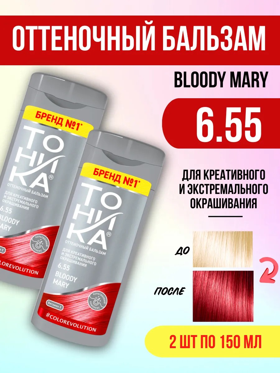 Тоника женская красная для волос 6.55 Bloody mary - для экстремального и креативного окрашивания. Придаст волосам сочный и насыщенный оттенок.