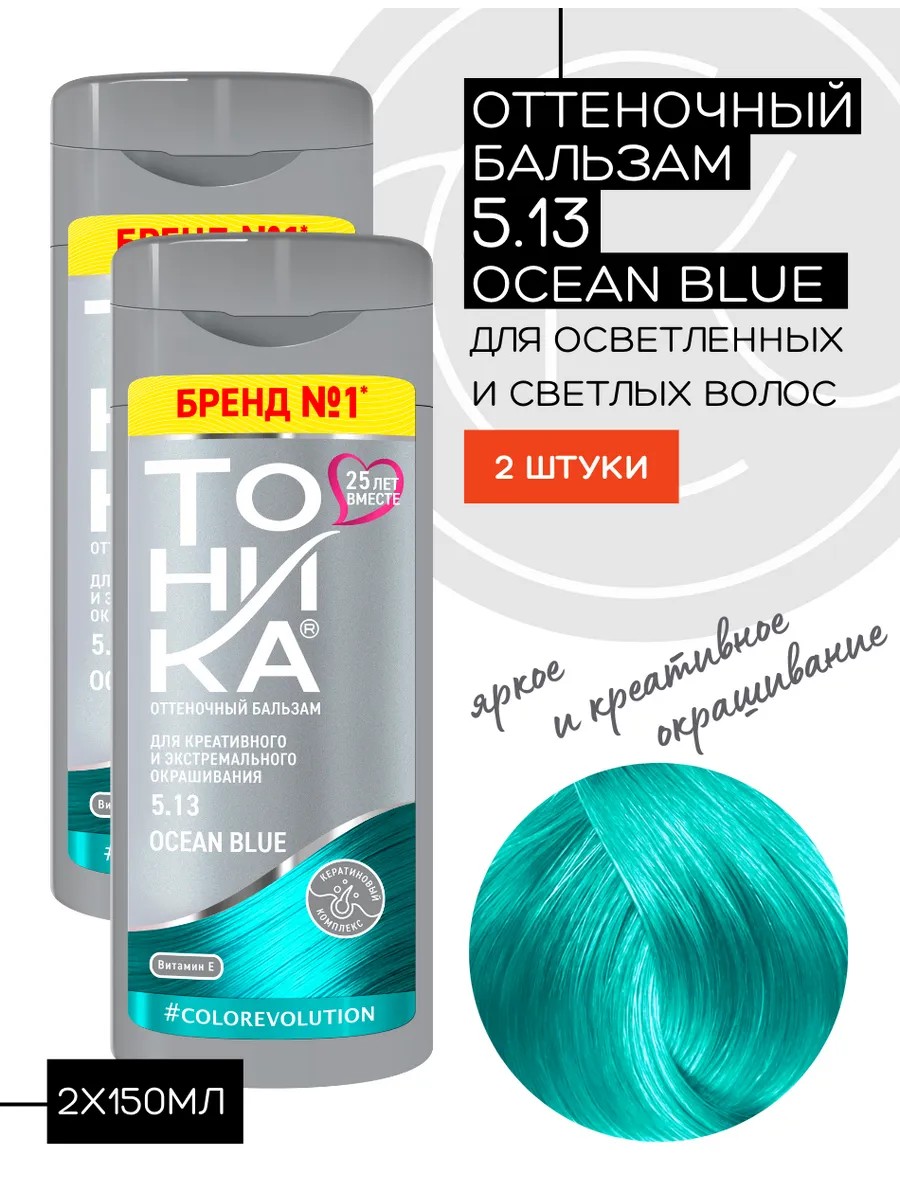Набор из 2 шт. оттеночных бальзамов для осветленных и светлых волос с прямыми пигментами Тоника COLOREVOLUTION тон 5.13 Ocean Blue (неоновый бирюзовый) обеспечивает множество вариантов для экспериментов и выражения индивидуальности, создания яркого неповторимого образа. Формула с насыщенными пигментами обеспечивает стойкое и равномерное тонирование. Активные компоненты облегчают расчесывание, ухаживают, питают и увлажняют волосы. Обеспечивает стойкий цвет и постепенно смывается при мытье головы шампунем. Содержит натуральные компоненты: Масло виноградной косточки, Кератин, Экстракт бамбука, Экстракт шелка, Экстракт хлопка, Витамин F. Средства не содержат аммиака, формальдегидов, персульфатов, перекиси и спирта. С данным оттенком ваши волосы станут столь же манящими, как бирюзовые волны океана, привнося в ваш образ свежесть и мечтательность. Экстремальное окрашивание, которое придаст вашим локонам сочный и насыщенный тон. Оттеночные средства для волос «Тоника» — это бережное отношение к Вашим волосам, высокое качество и эффективность, проверенные временем.