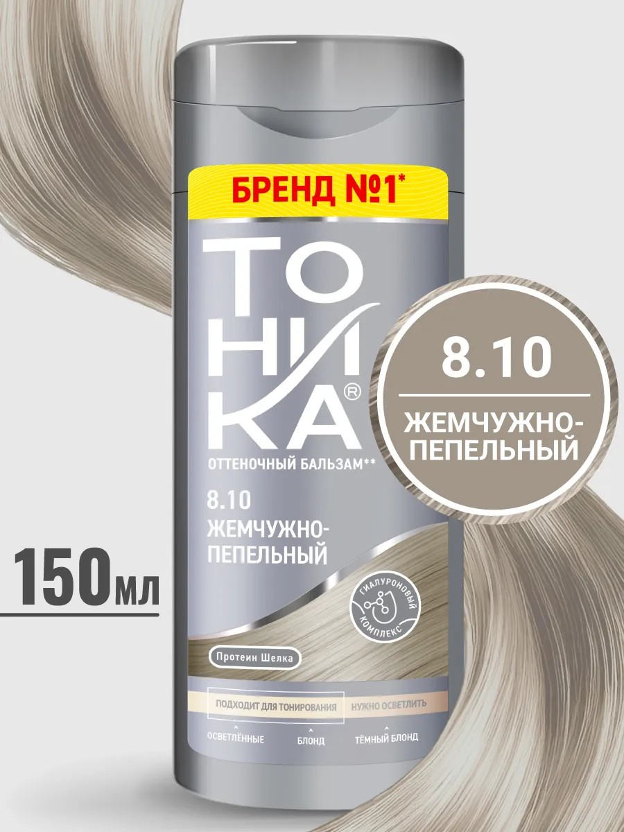 Бальзам для тонирования волос 8.10 ЖЕМЧУЖНО-ПЕПЕЛЬНЫЙ. Тоника для блондинок - многообразие оттенков для поддержания холодного блонда, обновления цвета и придания цветового нюанса. Формула с насыщенными пигментами обеспечивает стойкое и равномерное тонирование, активные компоненты облегчают расчесывание и увлажняют волосы. ТОНИКА - это оттеночный бальзам для волос без аммиака, перекиси и спирта. Он обеспечивает безопасную альтернативу стойким краскам для волос и предназначен для временного тонирования волос. Бальзам для волос можно использовать как салонный уход. Обеспечивает видимый результат после первого применения. Если вы хотите получить пастельный цвет, вы можете смешать тонирующее средство с нейтральной базой, такой как обычный бальзам или кондиционер для волос. Оттеночные средства разделены на категории: блонд оттенки в серых флаконах, подходят для осветленных и обесцвеченных волос. Нейтрализаторы желтизны в фиолетовых флаконах. Натуральные оттенки в зеленых флаконах для русых, темно-русых волос. Оттенки для седых волос в голубых флаконах. Яркие современные оттенки (прямые пигменты) представлены коллекцией Colorevolution в серых флаконах с яркой этикеткой.
