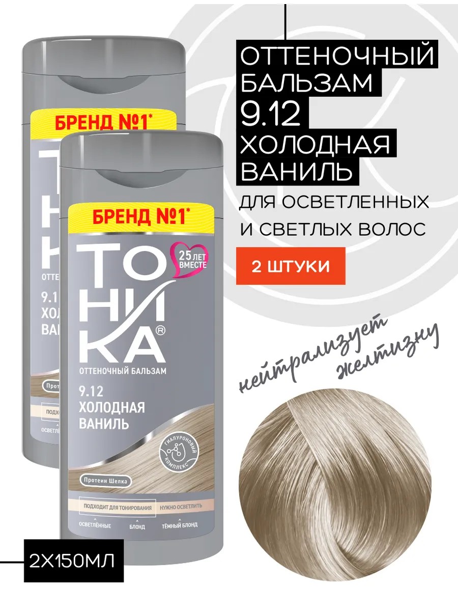 Набор из 2 шт. оттеночных бальзамов тон 9.12 Холодная ваниль придаст безупречный холодный оттенок, подчеркнет красоту Вашего блонда и отлично нейтрализует желтизну. Благодаря сочетанию идеально подобранных пигментов, оттеночные бальзамы для волос обеспечивают бережное тонирование. Активные компоненты облегчают расчесывание и увлажняют волосы. Обеспечивает стойкий цвет и постепенно смывается при мытье головы шампунем. Содержит натуральные компоненты: Масло виноградной косточки, Экстракт бамбука, Экстракт шелка, Экстракт хлопка, Витамин F. Средства не содержат аммиака, формальдегидов, персульфатов, перекиси и спирта. Оттеночные средства для волос «Тоника» — это бережное отношение к Вашим волосам, высокое качество и эффективность, проверенные временем.