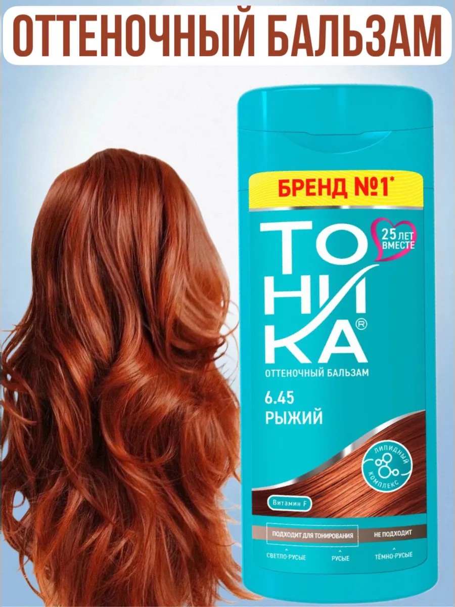 Тоника – оттеночный бальзам, средство для тонирования. 6.45 Рыжий. Русые и каштановые оттенки от холодного до теплого, медные и красноватые оттенки — идеально подобранные композиции пигментов для максимально натурального акцента на волосах. Подходят для поддержания насыщенного цвета между окрашиваниями. Тоника Colorevolution - линейка средств для временного тонирования волос в ультрамодные сочные цвета! Благодаря сочетанию идеально подобранных пигментов придаст волосам многогранный и выразительный оттенок, а активные компоненты облегчат расчесывание и увлажнят волосы. Тонирует незначительную седину. Для тёмно-русых и русых волос. Без аммиака, перекиси и спирта. Красивый цвет и натуральное сияние. Оттеночный бальзам ТОНИКА подходит для поддержания цвета окрашенных волос, обновления оттенка натуральных волос и тонирования отросших корней. Оттеночный бальзам обогащён дополнительными активными компонентами, которые ухаживают за волосами в процессе тонирования. Экстракт белого льна и витамин F увлажняют и питают волосы, способствуют разглаживанию структуры и придают волосам натуральный блеск. ТОНИКА - это оттеночный бальзам для волос без аммиака, перекиси и спирта. Оригинальный оттеночный бальзам облегчает расчесывание, а также равномерно тонирует их, что делает волосы более здоровыми и блестящими. Способствует разглаживанию структуры и придает волосам натуральный блеск. ТОНИКА натуральные оттенки - безопасная альтернатива стойким краскам, позволяют поддерживать насыщенный оттенок между окрашиваниями. При регулярном использовании оттенок может накапливаться. Частоту применения оттеночного средства вы сможете подобрать для себя индивидуально. Пользуйтесь перчатками, защищайте одежду полотенцем. Нанесите оттеночный бальзам на влажные волосы и равномерно распределите. Время выдержки: 3-5 мин. - для обновления цвета; 10-15 мин - для легкого оттенка; до 30 мин. - для получения более насыщенного оттенка. По истечении времени тщательно промойте волосы теплой водой.