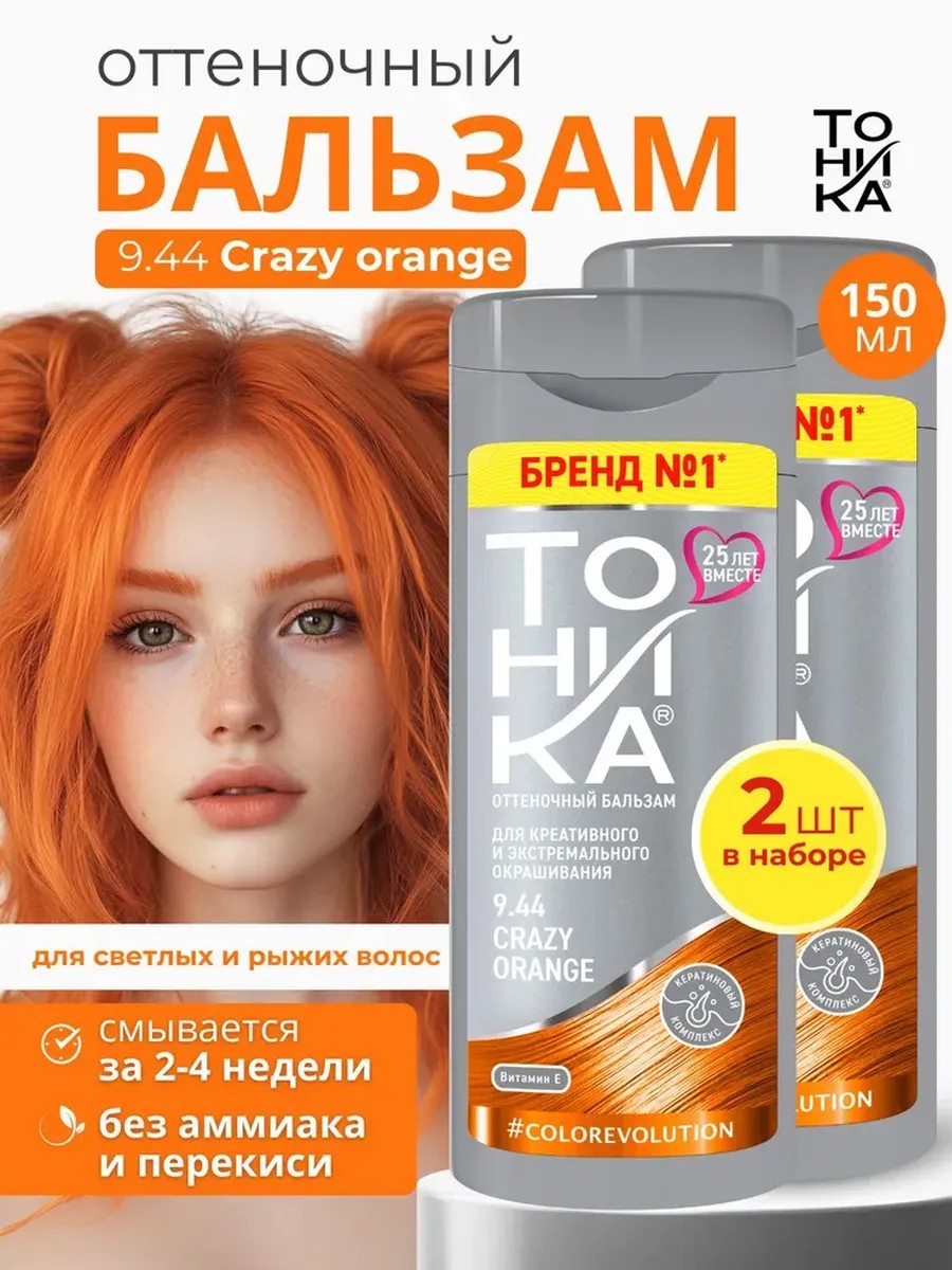 тоника оттеночный бальзам для волос яркое окрашивание 9.44, 2 шт