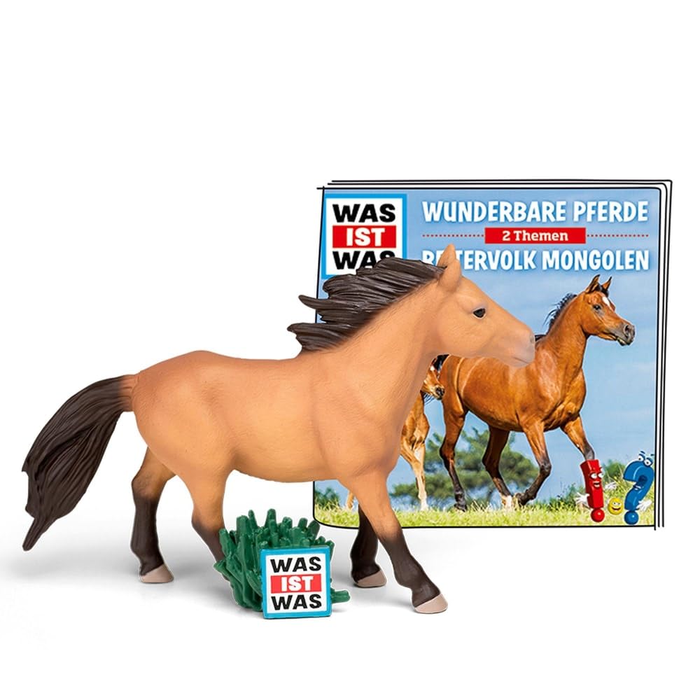 Tonies are hearing characters for the Toniebox.You make heard tabable, because with them you use the Toniebox.But you can also collect them and play with them.To listen to the story, simply place the hearing character on the Toniebox.The tonie is the magical key to your listening experience.If you put it up, the Toniebox immediately recognizes it and downloads the corresponding content from the TonieCloud and plays it directly.Once completely loaded, the content remains on the Toniebox and you can hear it anywhere, even without WiFi.01 to 17 - Wonderful horses 18 to 32 - Rider people Mongols Warnings Not suitable for children under 36 months.scope of delivery details-tonie figure horse incl. What is something radio play: wonderful horses riding folk Mongols, knowledge of knowledge for children from 6 years, playing time approx. 79 minutes.This is how it works - to listen to the exciting children's radio play, what is what Tonie is very easy on the Toniebox and you can start.Rider people Mongolen - Dschingis Khan justified the greatest world empire ever.But what made the riding Volk so successfulMany Mongols still live as nomads today.Wonderful horses - horses are best friends for many people.In the past, they served as work animals, including on a Cattle Ranch in the United States, where cowboys drive the herds of cattle on Quarter Horses.Radio play fun with Tonies - with the TonieBox you will listen to the audio book to the tangible experience!The Toniebox accessories not only conveys knowledge, but can also be used as a character.Tonies sind Hörfiguren für die Toniebox. Sie machen Hören anfassbar, denn mit ihnen bedient man die Toniebox. Man kann sie aber auch sammeln und mit ihnen spielen. Um der Geschichte zu lauschen, stellt man die Hörfigur einfach auf die Toniebox. Der Tonie ist der magische Schlüssel zu deinem Hörerlebnis. Stellst du ihn auf, erkennt ihn die Toniebox sofort und lädt den entsprechenden Inhalt aus der Toniecloud herunter und spielt ihn direkt ab. Einmal vollständig geladen, bleibt der Inhalt auf der Toniebox und du kannst ihn überall, auch ohne WLAN, hören. 01 bis 17 - Wunderbare Pferde 18 bis 32 - Reitervolk Mongolen WARNHINWEISE Nicht für Kinder unter 36 Monaten geeignet.Lieferumfang Details – Tonie-Figur Pferd inkl. WAS IST WAS Hörspiel: Wunderbare Pferde Reitervolk Mongolen, Wissenshörspiel für Kinder ab 6 Jahren, Spielzeit ca. 79 Minuten. So funktioniert's – Um dem spannenden Kinder Hörspiel zu lauschen, wird der WAS IST WAS Tonie ganz einfach auf die Toniebox gestellt und schon kann's losgehen. Reitervolk Mongolen – Dschingis Khan begründete das größte Weltreich aller Zeiten. Was aber machte das Reitvolk so erfolgreichViele Mongolen leben auch heute noch als Nomaden. Wunderbare Pferde – Pferde sind für viele Menschen beste Freunde. Früher dienten sie als Arbeitstiere, so auch auf einer Cattle Ranch in den USA, wo Cowboys auf Quarter Horses die Rinderherden treiben. Hörspielspaß mit tonies – Mit der Toniebox wird Hörbuch hören zum anfassbaren Erlebnis! Das Toniebox-Zubehör vermittelt nicht nur Wissen, sondern kann auch als Spielfigur genutzt werden.