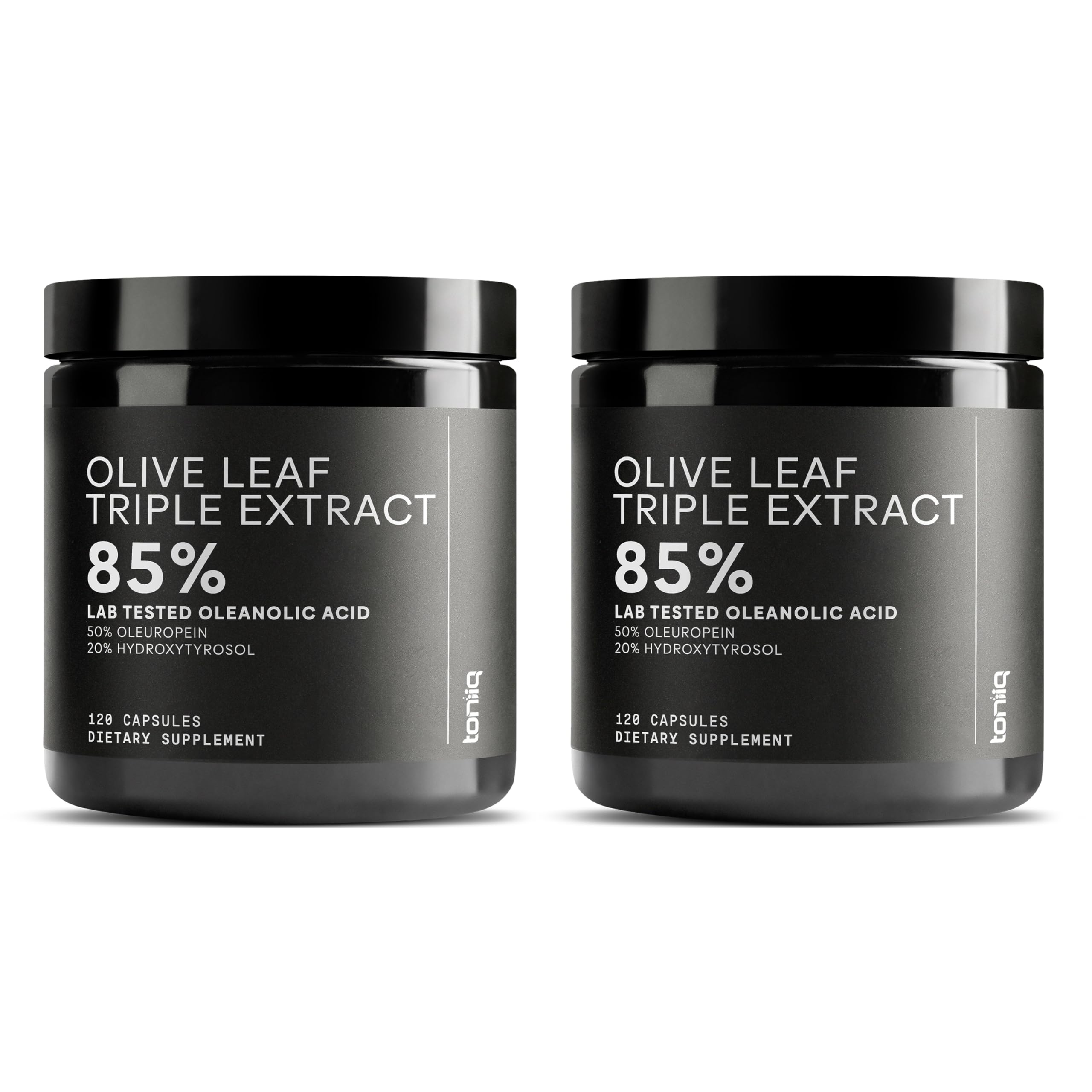 Toniiq 46 620 mg Olive Leaf Extract Complex with 85% Oleanolic Acid 50% Oleuropein & 20% Hydroxytyrosol - 50:1 Extract Ratio 1000mg Extract Per Serving Third-Party Tested 240 Capsules