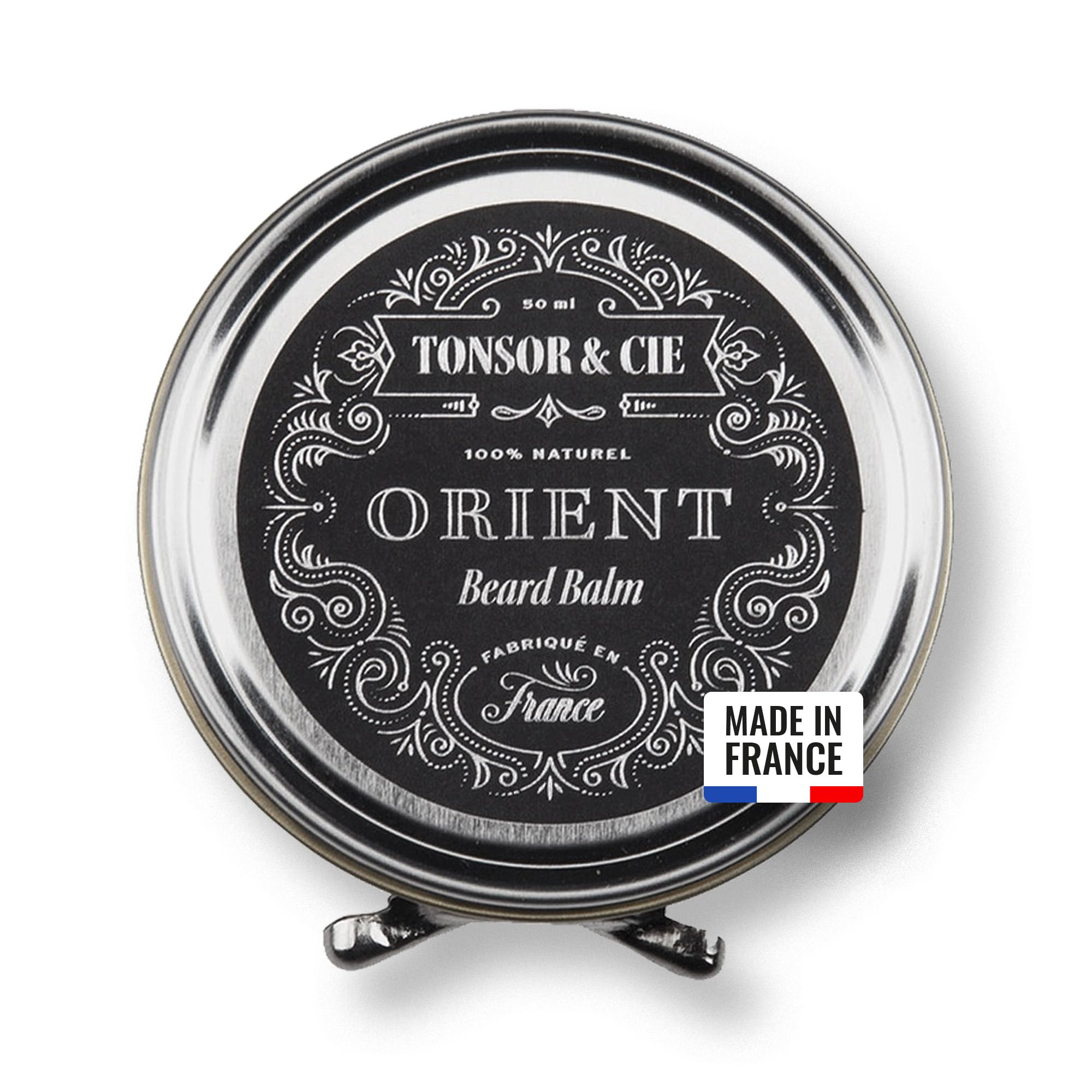 Tonsor Cie - Baume à Barbe Orient 50 ml - Soin Barbe Hydratant Disciplinant - Beurre de Karité, Cire d'Abeille Vitamine E - Parfum Ambre Rouge Vanille - Naturel - Formulé et Fabriqué en France