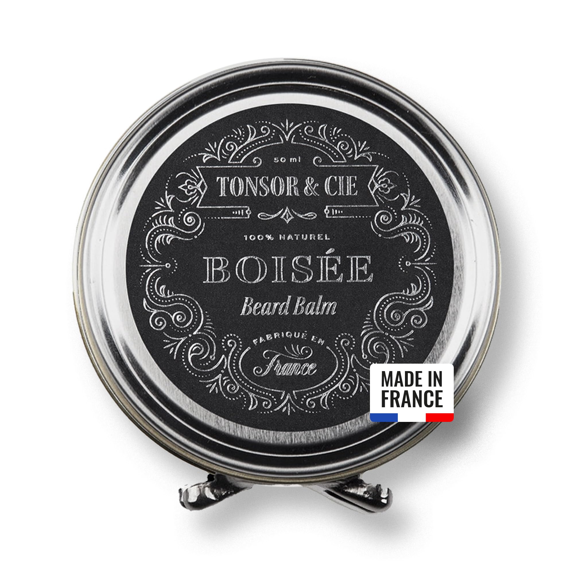 Tonsor Cie "Wooden" Beard Balm (50ml), composed of natural ingredients (shea butter, coconut oil, avocado oil, beeswax, vitamin E). Packaged in a vintage-style cylindrical steel tin. This 100 French-made product (handcrafted in the Southwest) has a warm and elegant fragrance and promotes the care and softening of your beard. A true multi-treatment, its natural and exclusive components provide genuine hydration for both hair and skin, and ensure easier detangling of even the most unruly beards. INGREDIENTS Butyrospermum parkii butter, Cocos nucifera oil, Persea gratissima oil, Cera alba, tocopherol, parfum, limonene. 97 natural origin DIRECTIONS FOR USE Place a small amount of product in the palm of your hand, rub your hands together to warm the balm, then spread evenly over your entire beard in the direction of hair growth. SAFETY WARNING For external use only. Do not swallow. Keep out of reach of children. Avoid contact with eyes. In case of contact, rinse thoroughly with water. Do not use on children under 3 years of age. See moreFormulated and made in France: Conceived in our barbershop in Toulouse and produced in the Southwest, this product reflects the authenticity of French barbering expertise. Handcrafted, natural, and cruelty-free. Subtle and masculine woody fragrance: Its scent with warm notes of ebony wood and patchouli reveals a discreet and modern elegance. A balanced olfactory signature that accompanies you without ever becoming overpowering. Structuring action without stiffness: Beeswax tames unruly hairs while respecting the natural suppleness of the beard. The result: a light and natural hold, without rigidity, for a perfectly styled beard all day long. Natural and effective formula: Composed of rigorously selected natural ingredients, this product offers a perfect balance between effectiveness and sensory pleasure. Its melting texture absorbs easily without leaving any residue. Daily hydration and manageability: Thanks to its synergy of shea butter, coconut oil, and avocado, this balm deeply hydrates, nourishes the hair fiber, and softens dry beards. It makes the beard more supple, shinier, and easier to style every day.Tonsor Cie - Baume à Barbe Boisée 50 ml - Soin Barbe Hydratant Disciplinant - Beurre de Karité, Cire d'Abeille Vitamine E - Parfum Bois d'Ébène - Naturel - Formulé et Fabriqué en FranceDESCRIPTION DU PRODUIT DESCRIPTION DU PRODUIT Tonsor Cie Baume à Barbe « Boisée » (50ml), composé d'ingrédients naturels (beurre de karité, coprah, avocat, cire d'abeille, vitamine E). Conditionné dans une boite cylindrique en acier à l'esprit vintage. Ce soin 100 made in France (confectionné artisanalement dans le Sud-Ouest) à la fragrance chaude et élégante, favorise l'entretien et l'assouplissement de votre barbe. Véritable multi-soins, ses composants naturels et exclusifs permettront une réelle hydratation du poil et de la peau, et assureront un démêlage plus aisé des barbes les plus rebelles. INGRÉDIENTS Butyrospermum parkii butter, Cocos nucifera oil, Persea gratiss ima oil, Cera alba, tocopherol, parfum, limonene. 97 d'origine naturelle MODE D'EMPLOI Déposer une petite quantité de produit au creux de la main, frotter vos mains pour chauffer le baume, puis répartir uniformément sur l'ensemble de votre barbe dans le sens du poil. AVERTISSEMENT DE SÉCURITÉ Usage externe, ne pas avaler. Tenir hors de portée des enfants. Eviter le contact avec les yeux. En cas de contact, rincer abondamment à l'eau. Ne pas utiliser chez les enfants de moins de 3ans. Voir plusFormulé et fabriqué en France : Imaginé dans notre barber shop à Toulouse et produit dans le Sud-Ouest, ce soin reflète l'authenticité du savoir-faire barbier français. Artisanal, naturel, et non testé sur les animaux. Parfum boisé subtil et masculin : Son parfum aux notes chaudes de bois d'ébène et de patchouli dévoile une élégance discrète et moderne. Une signature olfactive équilibrée qui vous accompagne sans jamais saturer. Action structurante sans effet carton : La cire d'abeille discipline les poils rebelles tout en respectant la souplesse naturelle de la barbe. Résultat : une tenue légère et naturelle, sans rigidité, pour une barbe au style maîtrisé toute la journée. Formule naturelle et efficace : Composé d'ingrédients d'origine naturelle rigoureusement sélectionnés, ce soin offre un parfait équilibre entre efficacité et sensorialité. Sa texture fondante pénètre facilement sans laisser de résidus. Hydratation et discipline au quotidien : Grâce à sa synergie de beurre de karité, coprah et avocat, ce baume hydrate en profondeur, nourrit la fibre du poil et adoucit les barbes sèches. Il rend la barbe plus souple, plus brillante et agréable à coiffer au quotidien.