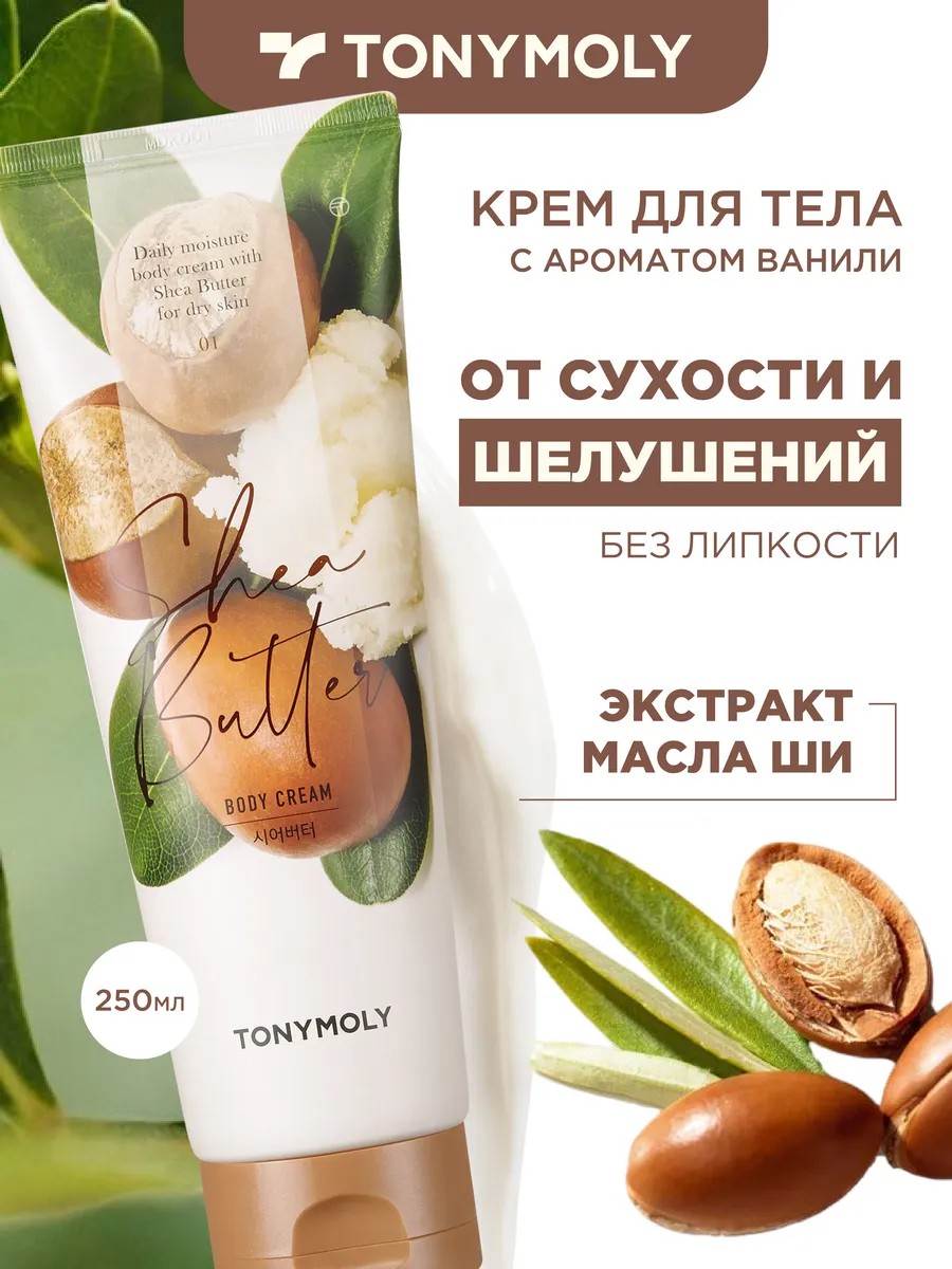 Увлажняющий и питательный крем для тела для сухой кожи с маслами (масло ши), Корея, 250 мл. Крем баттер для тела на основе масла ши растворяется на коже, обеспечивая максимальный комфорт и мягкость. Легкая кремовая текстура прекрасно питает и увлажняет кожу, не оставляя жирной пленки. В состав крема входит натуральное масло ши, которое получают из плодов тропического дерева карите. Масло ши - это сбалансированный комплекс жиров, углеводов и протеинов, ценных аминокислот и витаминов. Оно увлажняет и питает кожу, смягчает ее, эффективно защищает кожу от агрессивного воздействия окружающей среды: мороза, солнца, ветра. Благодаря комплексу растительных экстрактов центеллы азиатской портулака средство оказывает восстанавливающее действие, борется с увяданием, повышает упругость и эластичность кожи. 81% ингредиентов натурального происхождения. Формула предназначена для сухой и очень сухой кожи без ощущения жирности и липкости. Подходит для чувствительной кожи.