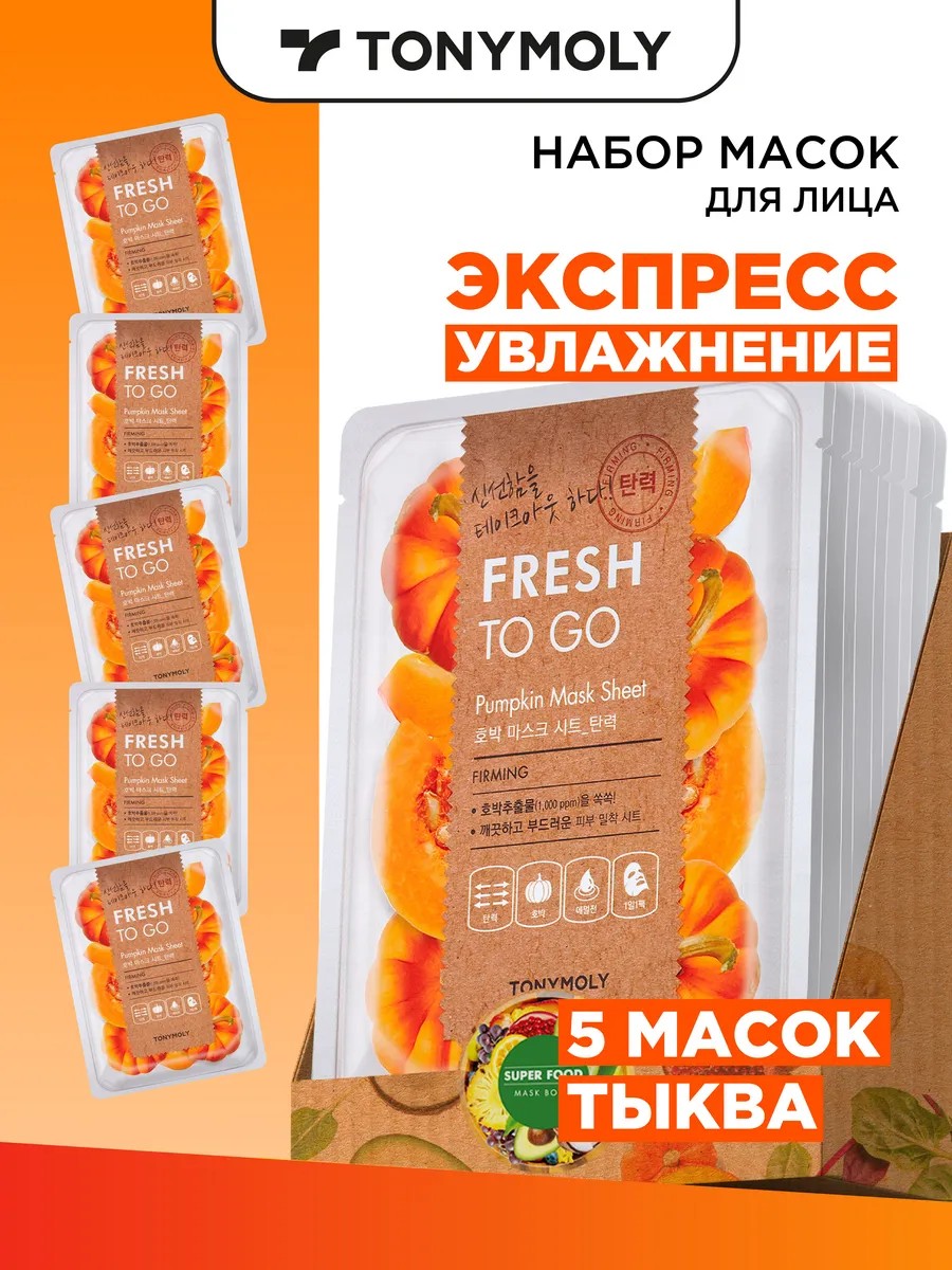 Освежающие тканевые маски TONYMOLY FRESH TO GO активно восстанавливают уставшую кожу, глубоко увлажняют и питают, устраняют тусклость и улучшают цвет лица. Маски насыщают кожу витаминами и микроэлементами, тонизируют, устраняют сухость и стянутость, делают кожу мягкой и бархатистой. Маски подходят для любых особенностей и типов кожи (увлажнение, питание, сужение пор, сияние кожи). Тканевые маски обильно пропитаны питательной эссенцией, которой хватит дополнительно на шею, руки, тело. У масок приятный натуральный аромат свежих фруктов и овощей. Не вызывают аллергии. Можно использовать беременным. Маски не оставляют ощущения липкости, не требуют смывания. Для лучшего эффекта храните их в холодильнике. Ткань у масок плотная, лекало подойдет всем. Способ применения: после этапов очищения и тонизирования нанесите маску на лицо и аккуратно распределите по коже. Через 15-20 минут снимите маску и кончиками пальцев мягко вбейте остатки эссенции. Используйте 1-2 раза в неделю. Набор из 5 масок для лица с экстрактом тыквы Fresh To Go Pumpkin Mask Sheet.Тканевая маска для лица с экстрактом тыквы cпособствует повышению эластичности кожи, выравнивает тон лица, разглаживает и успокаивает кожу. Улучшает снабжение клеток питательными веществами и кислородом, тем самым возвращая коже ухоженный вид и красивый румянец. Проверяйте целостность упаковки!