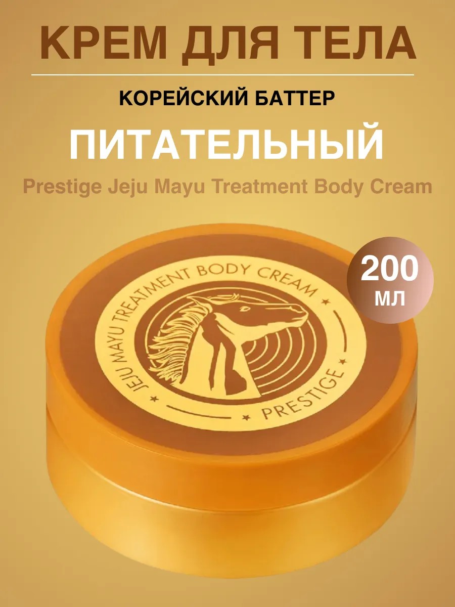Увлажняющий крем для ухода за кожей тела TONYMOLY Prestige Jeju Mayu Treatment Body Cream с лошадиным маслом, керамидами и пантенолом обладает роскошной тающей текстурой, делает кожу мягкой, гладкой и шелковистой, уберегает от появления шелушений и раздражений. Он наполняет клетки влагой, поддерживает упругость и повышает защитные свойства кожи. Главным компонентом питательного крема для тела является лошадиный жир, по составу сходный с себумом, который выделяет наш эпидермис. Поэтому частицы конского жира беспрепятственно проникают сквозь верхний роговой слой кожи и начинают работать в ее нижних слоях. Лошадиный жир прекрасно питает, увлажняет и смягчает кожу тела. Благодаря свойству снижать интенсивность разрушения коллагеновых волокон он сохраняет тонус кожи. Помимо крайне полезных для эпидермиса омега-3 и -6 кислот в состав лошадиного жира входят витамины красоты и молодости А и Е, которые борются со старением клеток. Кроме того, масло из лошадиного жира регулирует барьерную функцию кожи и восстанавливает ее липидный баланс, ускоряет заживление воспалений. Кроме того, лошадиный жир повышает способность кожи противостоять агрессивному воздействию неблагоприятных факторов внешней среды, препятствует обветриванию и обморожению. Еще один активный компонент увлажняющего крема – это керамиды - липиды, наполняющие кожу жизненной энергией и повышающие ее защитные функции. В составе косметических средств они интенсивно увлажняют, предупреждают риск обезвоживания клеток, защищает дерму от внешних негативных факторов, способствуют восстановлению липидного барьера кожи, успокаивают и снимают шелушения, делают кожу более гладкой и шелковистой. Крем подходит для всех типов кожи, особенно для сухой и раздраженной кожи, и идеален для ухода за телом в холодное время года. Способ применения: мягкими массажными движениями нанести на сухую чистую кожу тела.