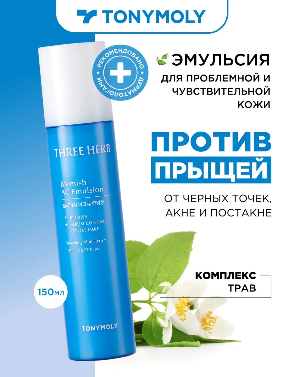 Эмульсия для лица с обезжиренной формулой Three Herb Blemish AC Emulsion для проблемной кожи мгновенно увлажняет кожу и борется с высыпаниями. Вода дамасской розы и масло листьев эвкалипта регулирует жирность кожи. 3 вида лекарственных трав (хауттюйния, пустырник, портулак), полученные методом низкотемпературной экстракции, оказывают мощное антибактериальное действие. Комплекс ростков пшеницы, ячменя, брокколи и фасоли успокаивает и снимает раздражение. Клинически доказано, при комплексном использовании выработка кожного сала сократилась на 33%, количество кожных высыпаний уменьшилось на 29,5%*. Содержит 95% натуральных компонентов. Дерматологически протестировано. Подходит для смешанной и жирной кожи, склонной к угревой сыпи, а также при возрастной угревой сыпи.*Клинические тестирования проводились Центром клинических исследований KC (Юж. Корея) с участием 23 человек.