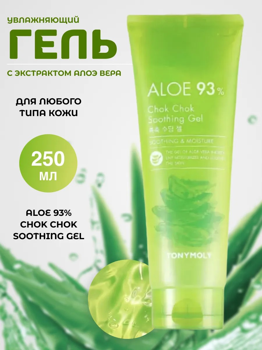 Универсальный гель с алоэ TONYMOLY Aloe 99% Chok Chok Soothing Gel обладает легкой текстурой и подходит для кожи любого типа. Он дарит коже чувство невероятного комфорта, охлаждает и успокаивает кожу, уменьшает зуд и покраснения, устраняет сухость и шелушения. Каждому типу кожи гель алоэ подарит необходимый уход, увлажнит и придаст тонус, успокоит и разгладит, ускорит заживление воспалений и сбалансирует работу сальных желез. Средство подходит для ежедневного применения как для лица, так и на любом участке тела и даже на волосах. В состав входит не менее 99% настоящего сока алоэ. В летнее время года его можно использовать вместо обычного крема. Также увлажняющий гель поможет успокоить кожу после загара, снять покраснения и зуд от укусов насекомых, успокоит кожу после бритья или эпиляции. Нанесение геля на кожу тела после душа позволит избежать сухости и стянутости и подарит освежающую бодрость. Хранить гель лучше всего в холодильнике, чтобы добиться оптимального охлаждающего эффекта.