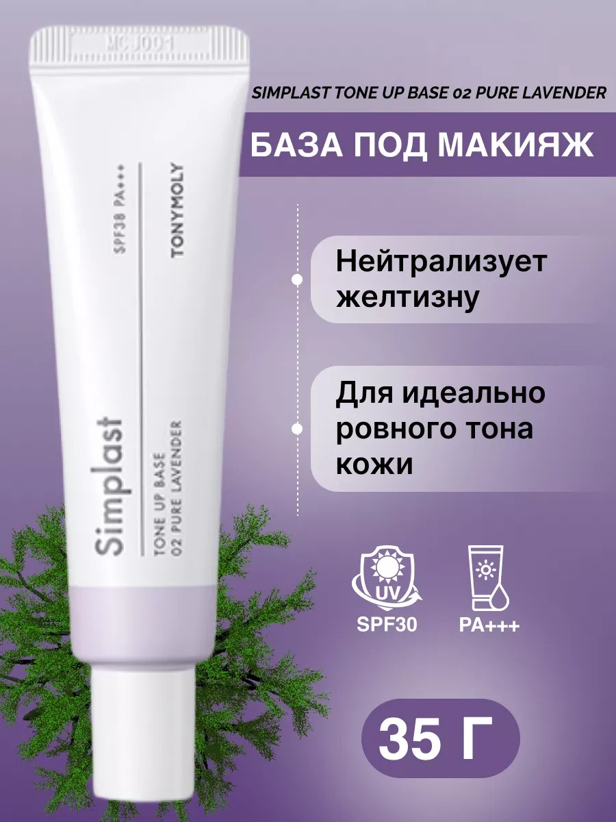 База под макияж фиолетового цвета TONYMOLY Simplast Tome Up Base 02 Pure Lavender популярного бренда корейской косметики создана специально для того, чтобы ваша кожа выглядела идеально. Это настоящее средство 3 в 1. Оно обладает рядом уникальных свойств, которые позволят вам создать безупречный макияж и обеспечить полноценный уход за вашей кожей. Во-первых, праймер для лица обладает высоким уровнем защиты от солнечных лучей благодаря SPF38 PA+++. Ваша кожа будет надежно защищена от вредного воздействия ультрафиолетовых лучей, которые вызывают преждевременное старение и пигментацию. Во-вторых, наша база под макияж имеет фиолетовый оттенок, который позволяет скорректировать желтый оттенок кожи. Ее можно точечно наносить на веснушки, родинки и пигментные пятна, чтобы сделать их практически незаметными. А еще она виртуозно маскирует темные круги под глазами, нейтрализуя синеву. В-третьих, наша основа под макияж обладает матирующими и себорегулирующими свойствами благодаря кипарисовой воде. Она поможет контролировать выделение кожного сала и предотвратит появление жирного блеска на вашем лице. А масло чайного дерева способствует заживлению воспалительных элементов и очищению кожи лица. Наша база под макияж также поможет выровнять общий тон вашей кожи и скрыть мелкие недостатки. Она создаст идеальную основу для вашего макияжа, делая его более стойким и ровным, а также обеспечит полноценный уход за вашей кожей. Попробуйте нашу базу под макияж и убедитесь в ее эффективности сами!