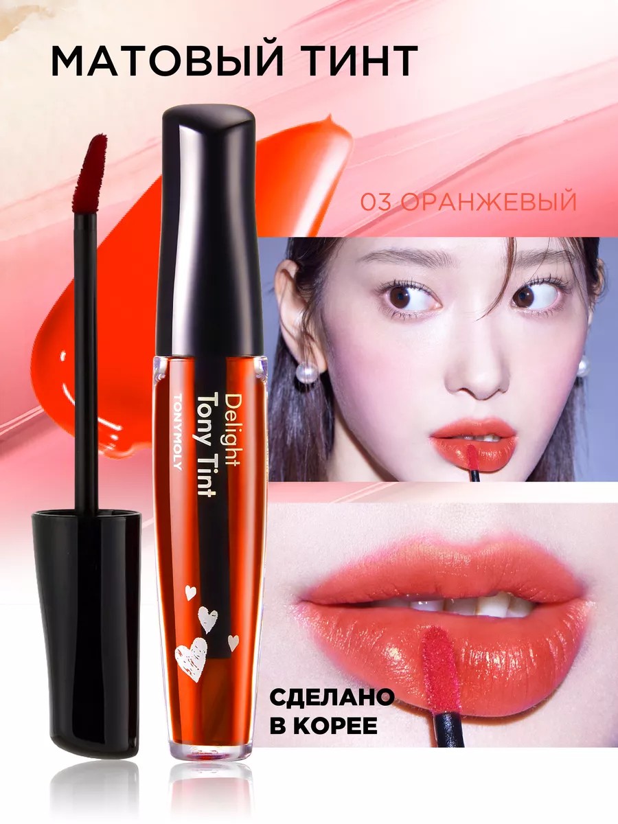 Корейский матовый тинт для губ Delight Tony Lip Tint — первый стойкий тинт на водной основе, придаёт губам яркий оттенок и создаёт матовый финиш, который не боится поцелуев и всегда готов покорять сердца!