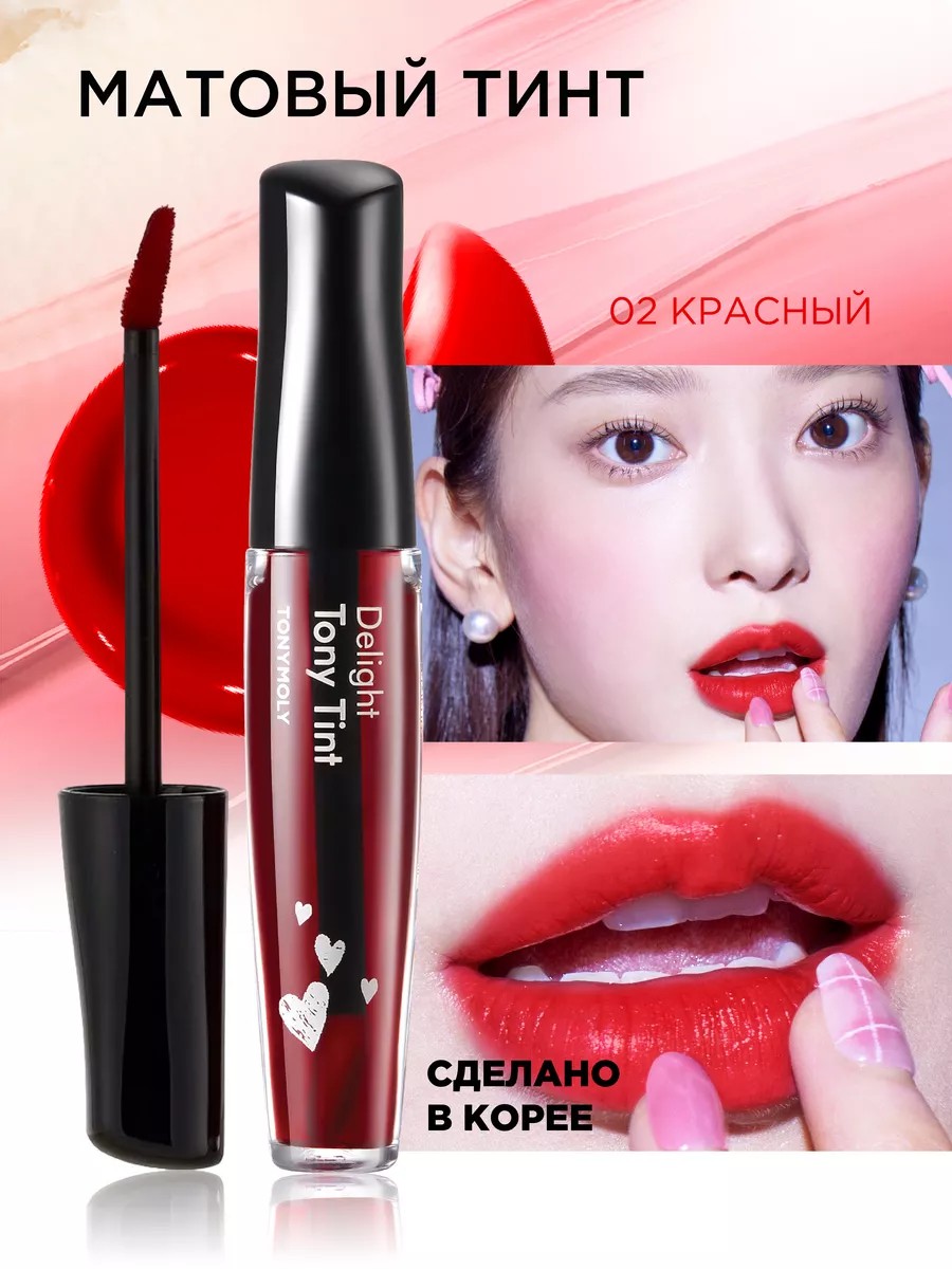 Корейский матовый тинт для губ Delight Tony Lip Tint — первый стойкий тинт на водной основе, придаёт губам яркий оттенок и создаёт матовый финиш, который не боится поцелуев и всегда готов покорять сердца!