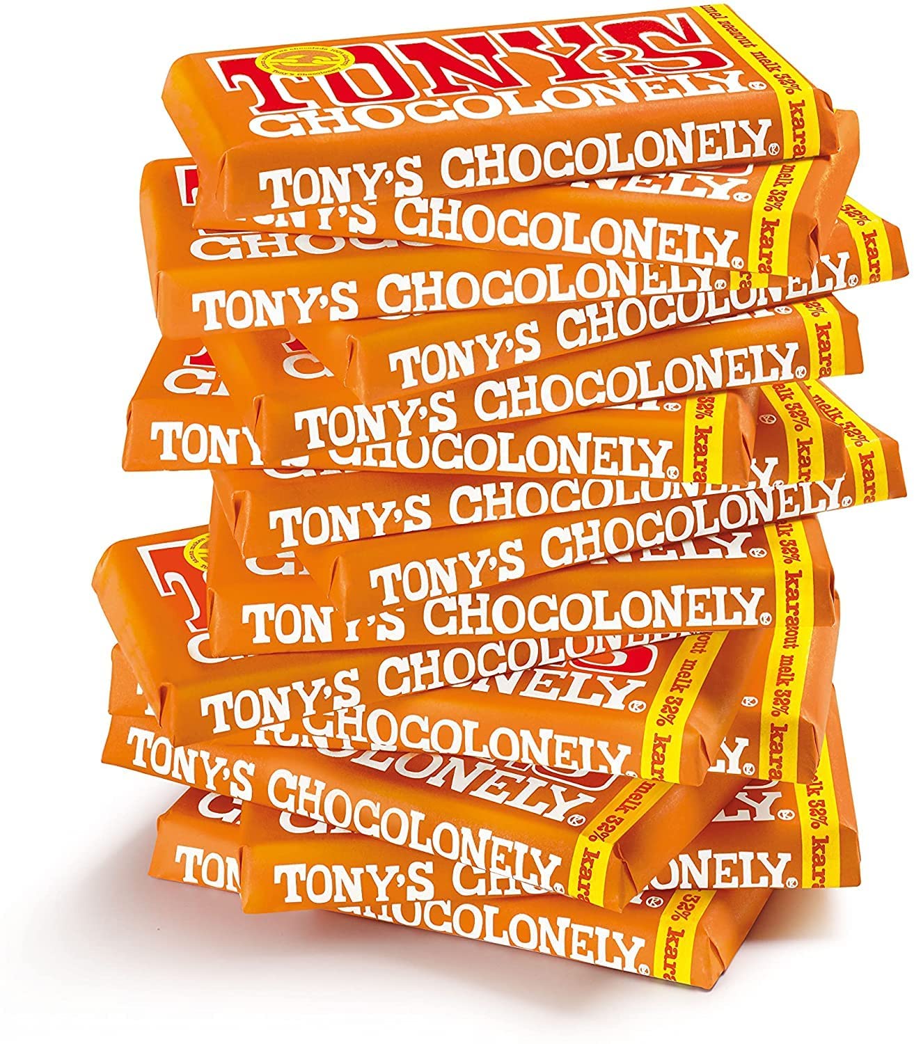 Tony's Chocolonely Tony's Chocolonely - Whole Milk Chocolate with Caramel and Sea Salt - Chocolate Picture with Caramel Pieces - 32% Cocoa - 15 x 180g - Fairtrade Belgian Chocolate