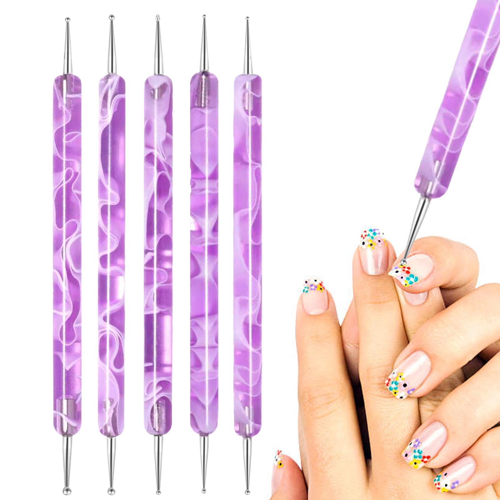 Tools - Multifunctional Nail & Miniature Painting Brushes | Nail Dotting Drawing Tool Double Ended Nail Brush Pen for Fine Detailing Home Salon Purple