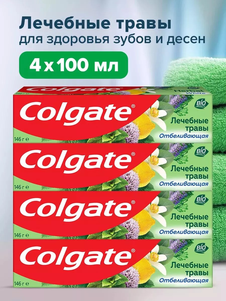 Colgate Зубная паста Колгейт Лечебные травы отбеливающая, 4*100 мл