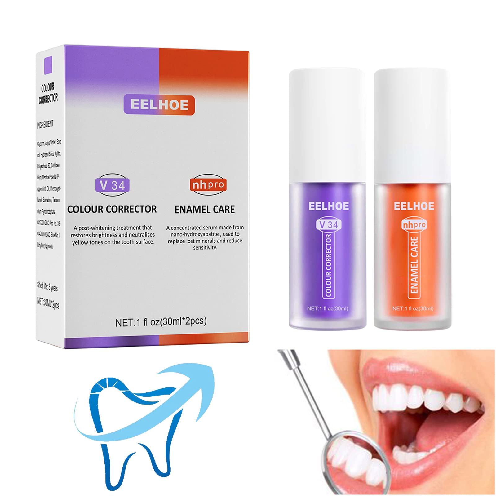 Toothpaste for cleaning teeth Teeth whitening Enamel care Toothpaste stains, whitening toothpaste stain removal, whitening toothpaste for stain removal. Purple--Helps break down pigmentation on tooth surface, blocks pigmentation, reduces yellow stains on teeth, makes your teeth more yellow. Freshens breath and bad breath, cares for whiter teeth. Orange-- More effective than traditional toothpaste, which can help replenish lost minerals and reduce sensitivity. Allows you to freely enjoy various ice creams or hot things. Functionality : 1. Effectively whiten teeth and make your smile more beautiful. 2. It contains sorbitol, xylitol, glycerin and other ingredients, which are very safe, can be used safely. 3. It's time to show off your smile brighter and whiter. 4. Improve sensitive teeth, improve enamel and treat tooth sensitivity, let you freely enjoy various ice creams or hot things. Specification : Net content: 30 ml Gross weight: 45 g Package size: 3.4 x 3.4 x 12.5 cm Material: Sorbitol, Xylitol, Glycerin, nhap The package includes: 1 2pcs Sensitive Teeth Whitening ToothpasteTwo Different Effects Purple whitening toothpaste helps break down pigmentation on the surface of teeth, block pigmentation, reduce yellow stains on teeth, make your teeth no longer yellow. can replace lost minerals and reduce sensitivity, you can eat what you want without worrying about toothache. Fresh Breath Deep Clean The flavor provides long-lasting freshness in your mouth for healthy teeth and gums. Promotes strong tooth enamel and repairs compromised sections of enamel, white teeth and fights bad breath. Removes Deep Stains This fluoride-free toothpaste foam can penetrate into the crevices of tooth enamel and remove food debris and deep stains embedded there. Sensitive Teeth Repair Toothpaste :Strong enamel toothpaste that improves the overall health of your tooth enamel, Sensitive enamel toothpaste specially formulated to gently polish away stains, restoring the natural whiteness of your teeth. More effective than traditional toothpaste, which can help replenish lost minerals and reduce sensitivity. Let you enjoy various ice cream or hot things freely. Teeth Whitening Whitening toothpaste with superior stain removal formula. V34 color correcting toothpaste helps break down pigmentation on the surface of teeth, block pigmentation, reduce yellow stains on teeth, make your teeth no longer yellow. Effectively helps teeth whiten and makes your smile more beautiful. Refresh breath and bad breath, care for whiter teeth. Natural Ingredients With plant extracts, it contains sorbitol, xylitol, glycerin and other ingredients, which are very safe and secure to use. It is an ultimate safe solution for all coffee and tea drinks, providing you with a visible whitening effect as well as comprehensive protection for your gums. Dentifrice pour le nettoyage des dents Blanchiment des dents Soin de l'émail Taches de dentifrice, dentifrice blanchissant l'élimination des taches, dentifrice blanchissant pour l'élimination des taches. Violet-- Aide à décomposer la pigmentation à la surface des dents, bloque la pigmentation, réduit les taches jaunes sur les dents, rend vos dents plus jaunes. Rafraîchit l'haleine et la mauvaise haleine, prend soin des dents plus blanches. Orange-- Plus efficace que le dentifrice traditionnel, qui peut aider à reconstituer les minéraux perdus et à réduire la sensibilité. Vous permet de profiter librement de diverses glaces ou choses chaudes. Fonctionnalité : 1. Blanchissez efficacement les dents et rendez votre sourire plus beau. 2. Il contient du sorbitol, du xylitol, de la glycérine et d'autres ingrédients, qui sont très sûrs, peuvent être utilisés en toute sécurité. 3. Il est temps de montrer votre sourire plus lumineux et plus blanc. 4. Améliorez les dents sensibles, améliorez l'émail et traitez la sensibilité des dents, vous permettent de profiter librement de diverses glaces ou choses chaudes. Spécification : Contenu net : 30 ml Poids brut : 45 g Taille de l'emballage : 3,4 x 3,4 x 12,5 cm Matériel : Sorbitol, Xylitol, Glycérine, nhap Le forfait comprend : 1 2 pièces dentifrice blanchissant les dents sensiblesDeux effets différents Le dentifrice blanchissant violet aide à décomposer la pigmentation à la surface des dents, à bloquer la pigmentation, à réduire les taches jaunes sur les dents, à faire en sorte que vos dents ne jaunissent plus. peut remplacer les minéraux perdus et réduire la sensibilité, vous pouvez manger ce que vous voulez sans vous soucier des douleurs dentaires. Respire fraîche et nettoyage en profondeur La saveur offre une fraîcheur durable dans votre bouche pour des dents et des gencives saines. Favorise un émail dentaire fort et répare les sections compromises de l'émail, des dents blanches et combat la mauvaise haleine. Élimine les taches profondes Cette mousse de dentifrice sans fluorure peut pénétrer dans les crevasses de l'émail des dents et éliminer les débris alimentaires et les taches profondes qui s'y incrustent. Dentifrice Réparer les Dents Sensibles : Dentifrice en émail fort qui améliore la santé globale de votre émail dentaire, Dentifrice en émail sensible spécialement formulé pour polir en douceur les taches, restaurant la blancheur naturelle de vos dents. Plus efficace que le dentifrice traditionnel, qui peut aider à reconstituer les minéraux perdus et réduire la sensibilité. Laissez-vous profiter de diverses glaces ou choses chaudes librement. Blanchiment des dents Dentifrice blanchissant avec une formule supérieure d'élimination des taches. Le dentifrice correcteur de couleur V34 aide à décomposer la pigmentation à la surface des dents, à bloquer la pigmentation, à réduire les taches jaunes sur les dents, à faire en sorte que vos dents ne jaunissent plus. Aide efficacement les dents à blanchir et rend votre sourire plus beau. Rafraîchir l'haleine et la mauvaise haleine, prendre soin des